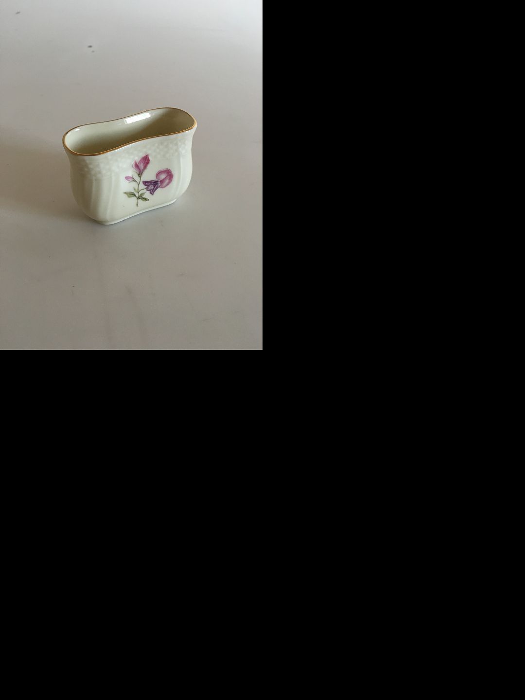 Royal Copenhagen Frijsenborg Toothpick Holder / Matchstick Holder No 1801. 5 x 7 cm. Creme colored with flower motifs named after the Danish noble county of Frijsenborg.