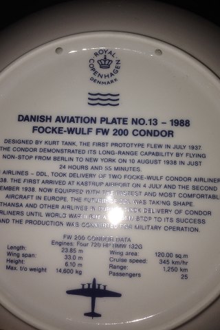 Danish Aviation Plate No.13 - 1988 Focke-Wulf FW 200 Condor "Jutlandia" FW200 1938 DDL 1988.