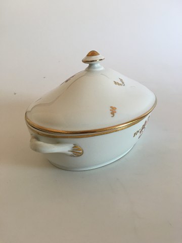 Royal Copenhagen Brown Iris Oval Bowl with Lid No 9348. 23.5 x 18 cm. The gold at the top handle is a bit worn.