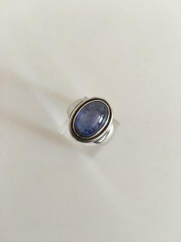 Georg Jensen Sterling Silver Ring No 46B Ornamented with Violet Stone. Ring Size 56. Weighs 7 g. From 1933-1945