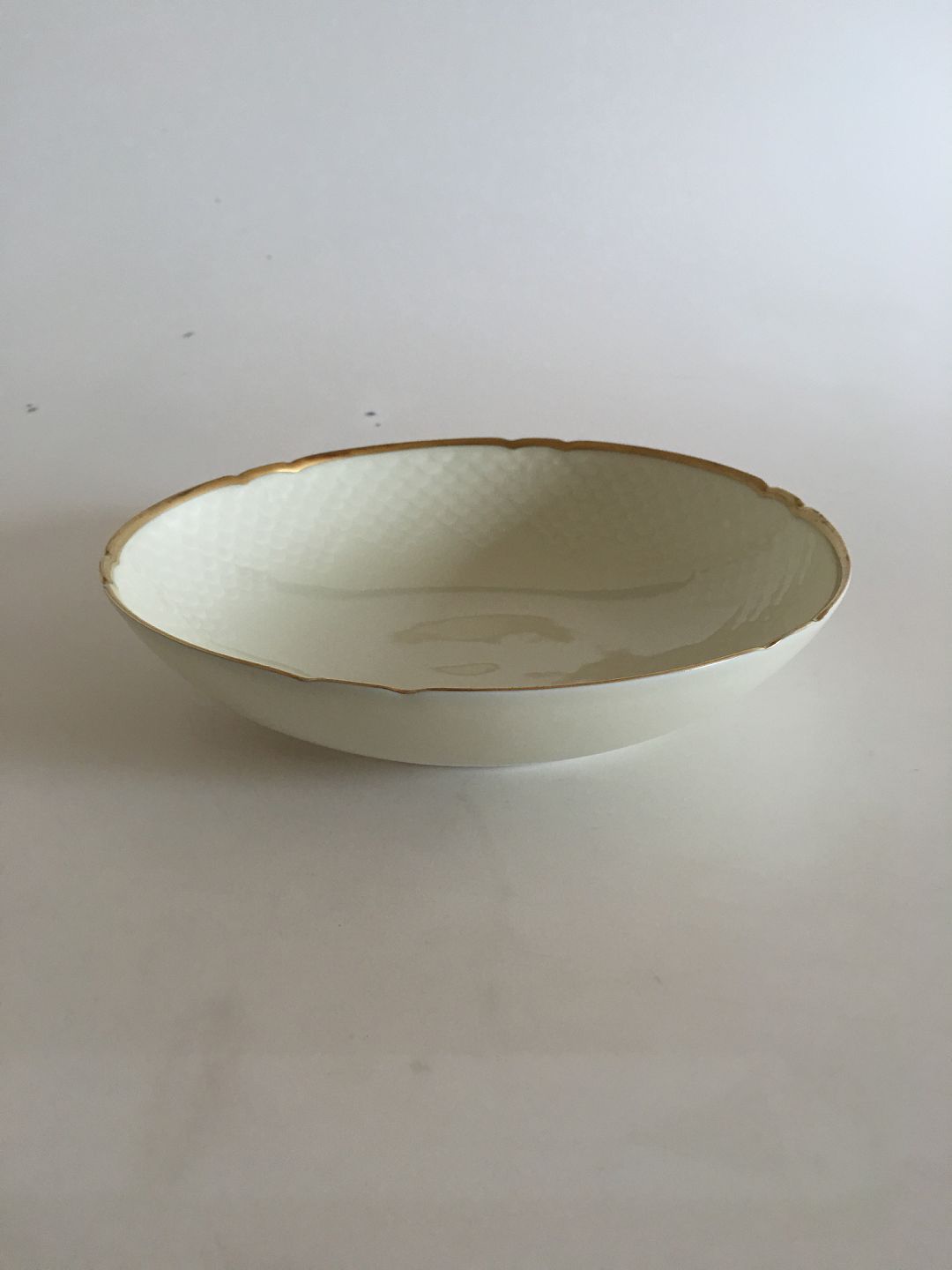 Bing & Grondahl Aakjaer Round Bowl No 44 (medium). Creme with Gold Border. In good condition. 21 cm.