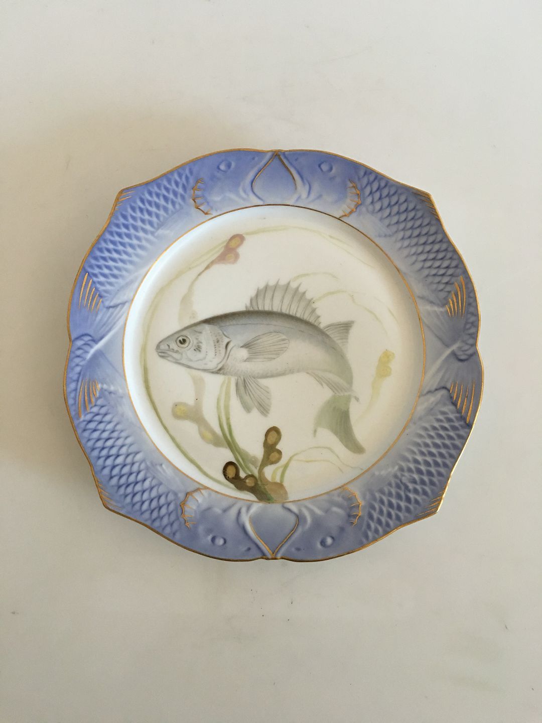 Royal Copenhagen Blue Fishplate with Gold No 1212/3002 with Labrax Lupus. 22.5 cm