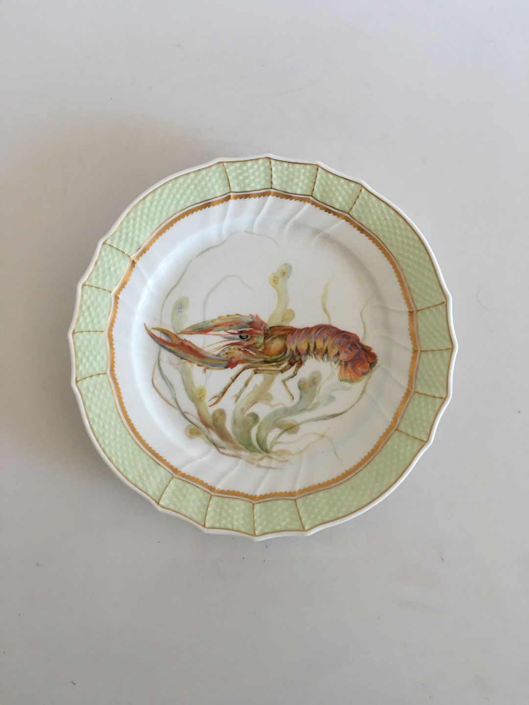 Royal Copenhagen Grøn Fisketallerken No 919/1710 med Nephrops Norvegicus. 25 cm