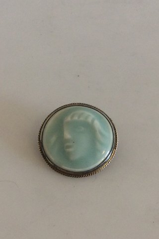 Royal Copenhagen Jais Nielsen Broche fra Dragsted Sølvsmede I celedon glasur.