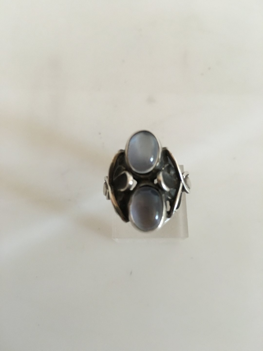 Georg Jensen Sterling Sølv Ring med Månesten No 48. Ringstørrelse 53. Vejer 6 g. Fra efter 1945.