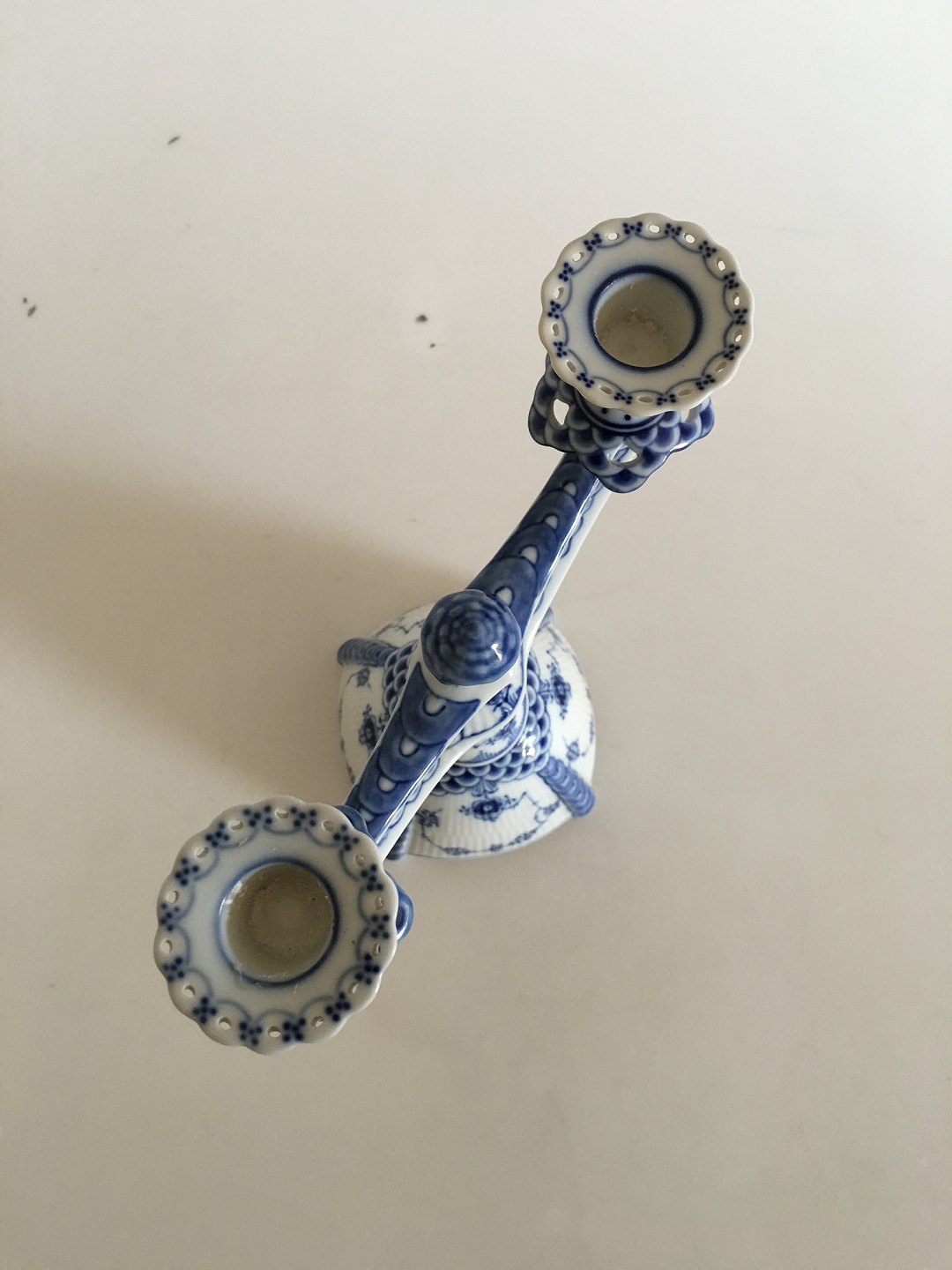 Royal Copenhagen Blue Fluted Full Lace Two-Armed Candelabra No 506 / No 1169. 25 cm tall (9 27/32"). In perfect condition.