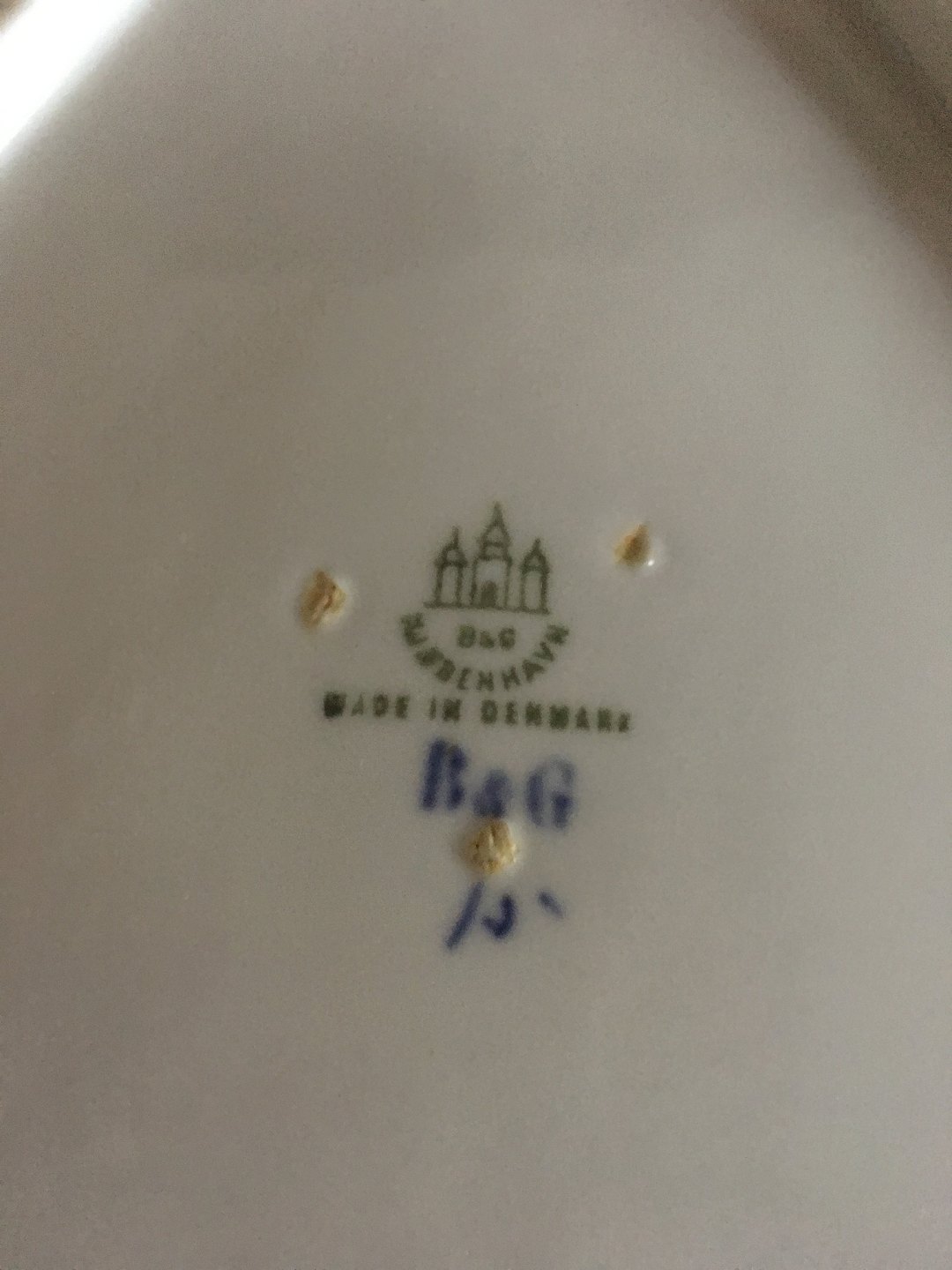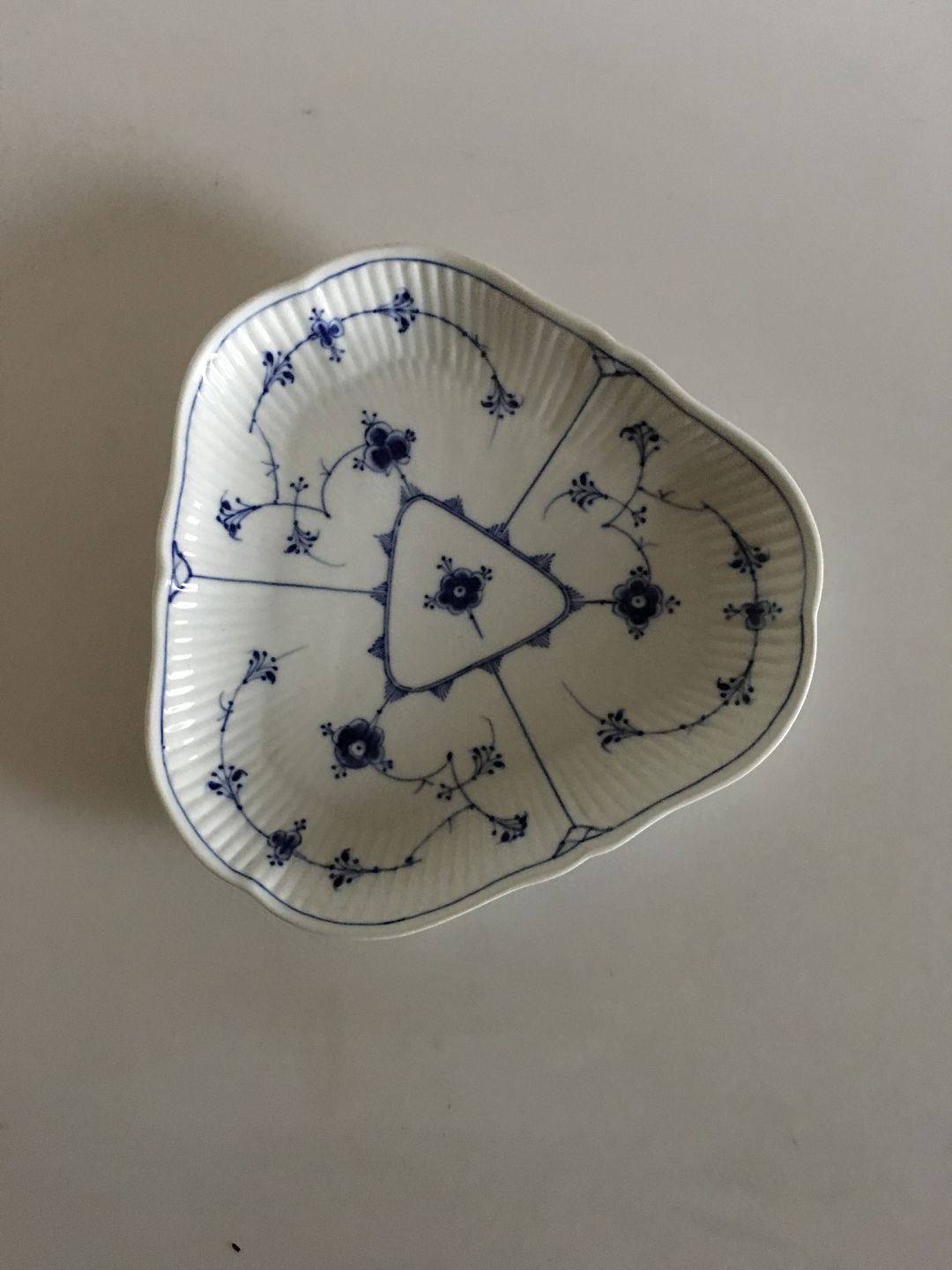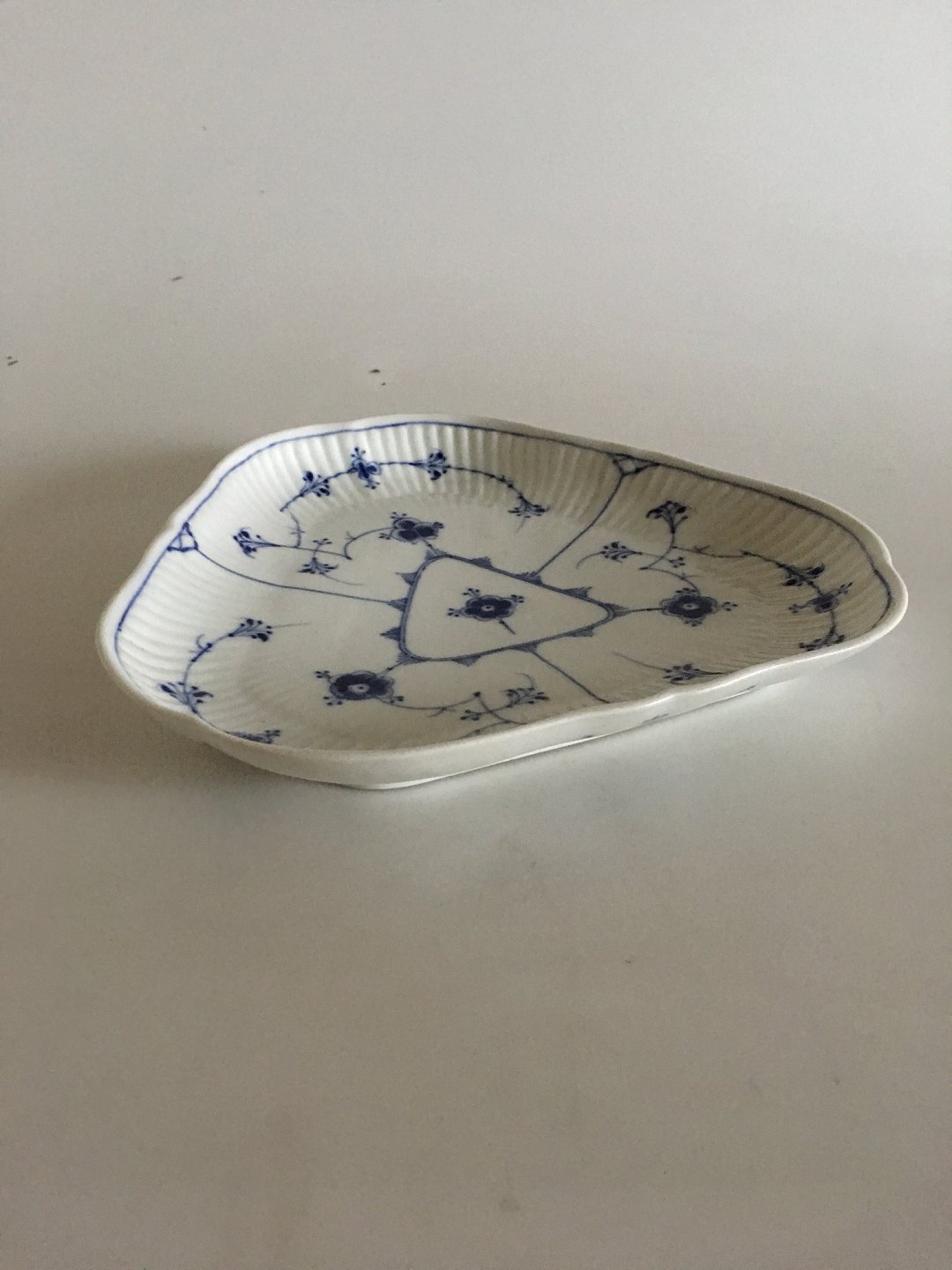 Bing & Grøndahl Blåmalet Musselmalet Riflet Trekantet Kagefad. 22 cm dia.
