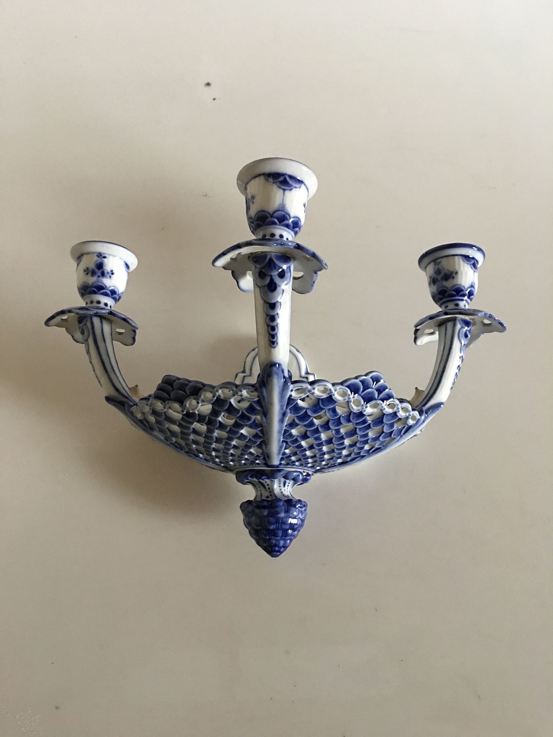 Royal Copenhagen Antique Blue Fluted Full Lace Wall Sconces No 1111. Dates between 1870-1893. Measures 28 cm x 22 cm / 11.02 in x 8.66 in. In perfect condition.