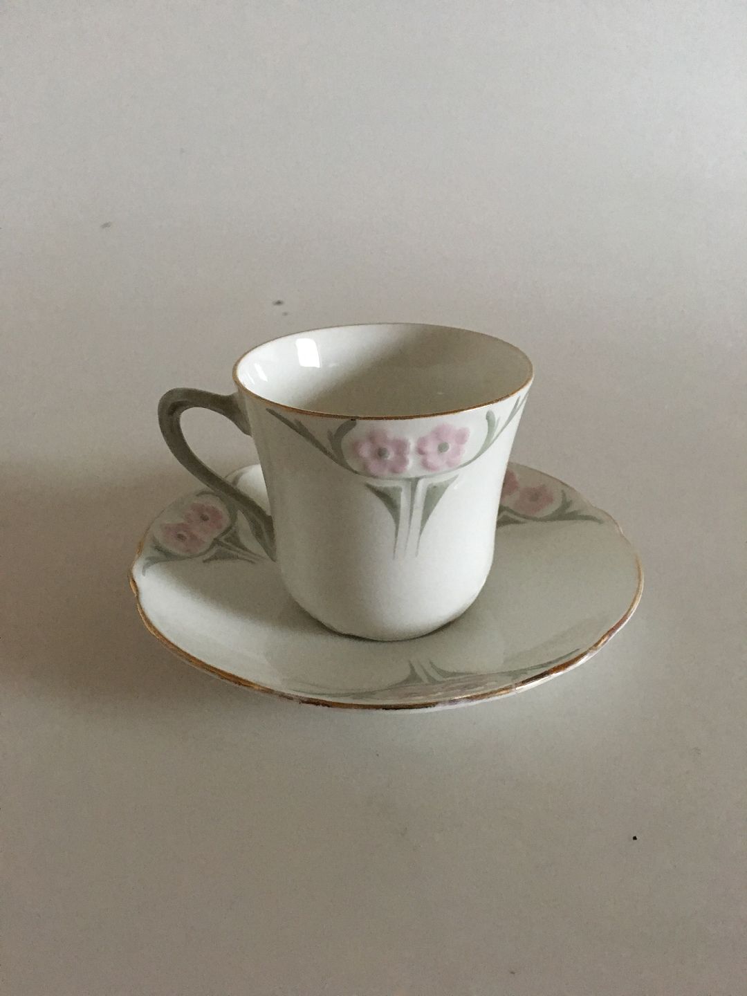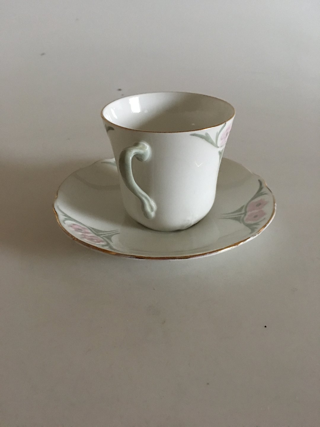 Rörstrand Art Nouveau Coffee Cup and Saucer. With Roses and Gold on the rim. Measures 7 x 7 cm (2 3/4" x 2 3/4").