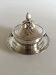 Georg Jensen Sterling Sølv Kaviar Skål No 44. Med stempler fra 1932-1944. Smukt ornamenteret låg prydet med mandelformede kugler af elfenben. Med glasindsats som har et enkelt lille flig i kanten. Ellers er hele kaviarskålen i meget fin stand. 12 cm H (med låg). Skåldelen har en diameter på 11 cm. Underskålen en diameter på 17 cm. Vejer uden glasindsatsen 511 gram.