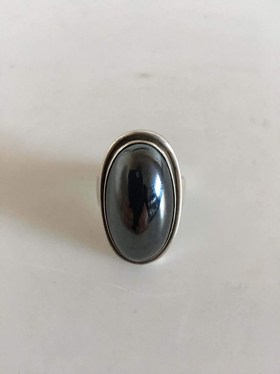 Georg Jensen Sterling Silver Ring No 46E with Hematite. Ring Size 59 / US 8 1/2. Weighs 23 g / 0.80 oz.
