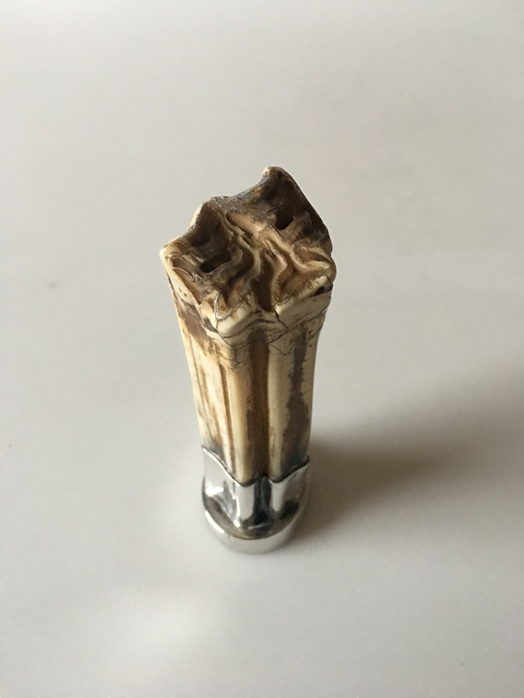 Evald Nielsen Signet Stamp in Silver with Hippopotamus Tooth. 3.5 cm dia (1 3/8"). 10 cm H (3 15/16")