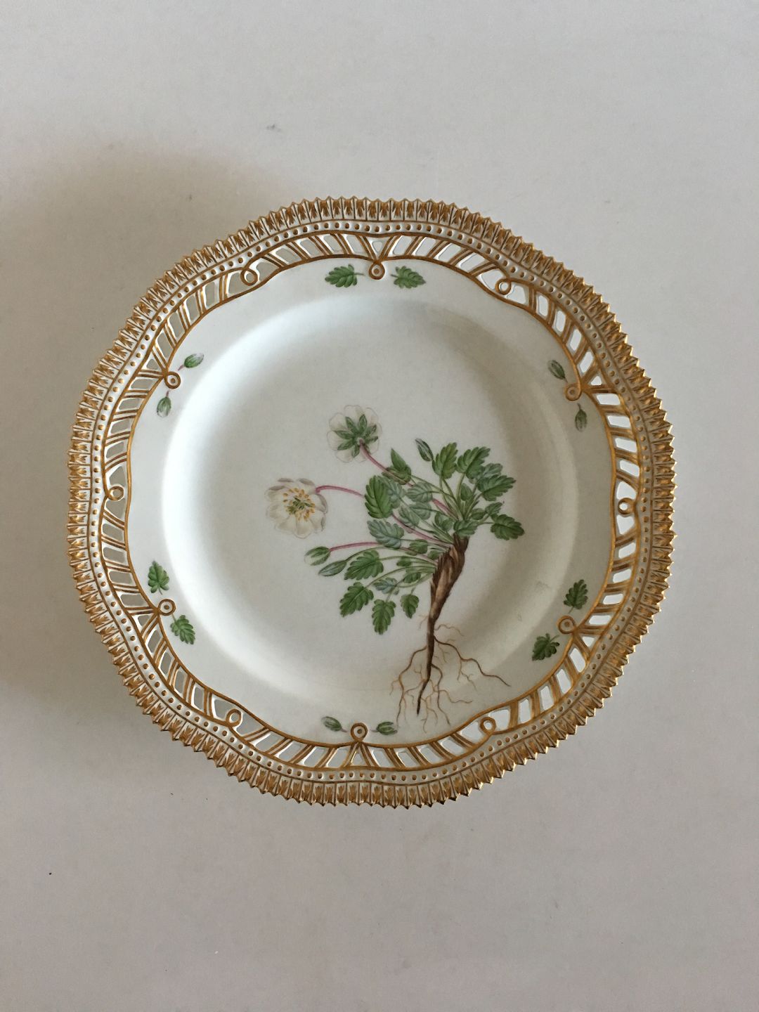 Royal Copenhagen Flora Danica Frokosttallerken No 20/3554 med Gennembrudt Kant. Latinsk Navn: Dryas Octopetala (Alm. Rybelyng). 23 cm . 1. Sort. I perfekt stand.