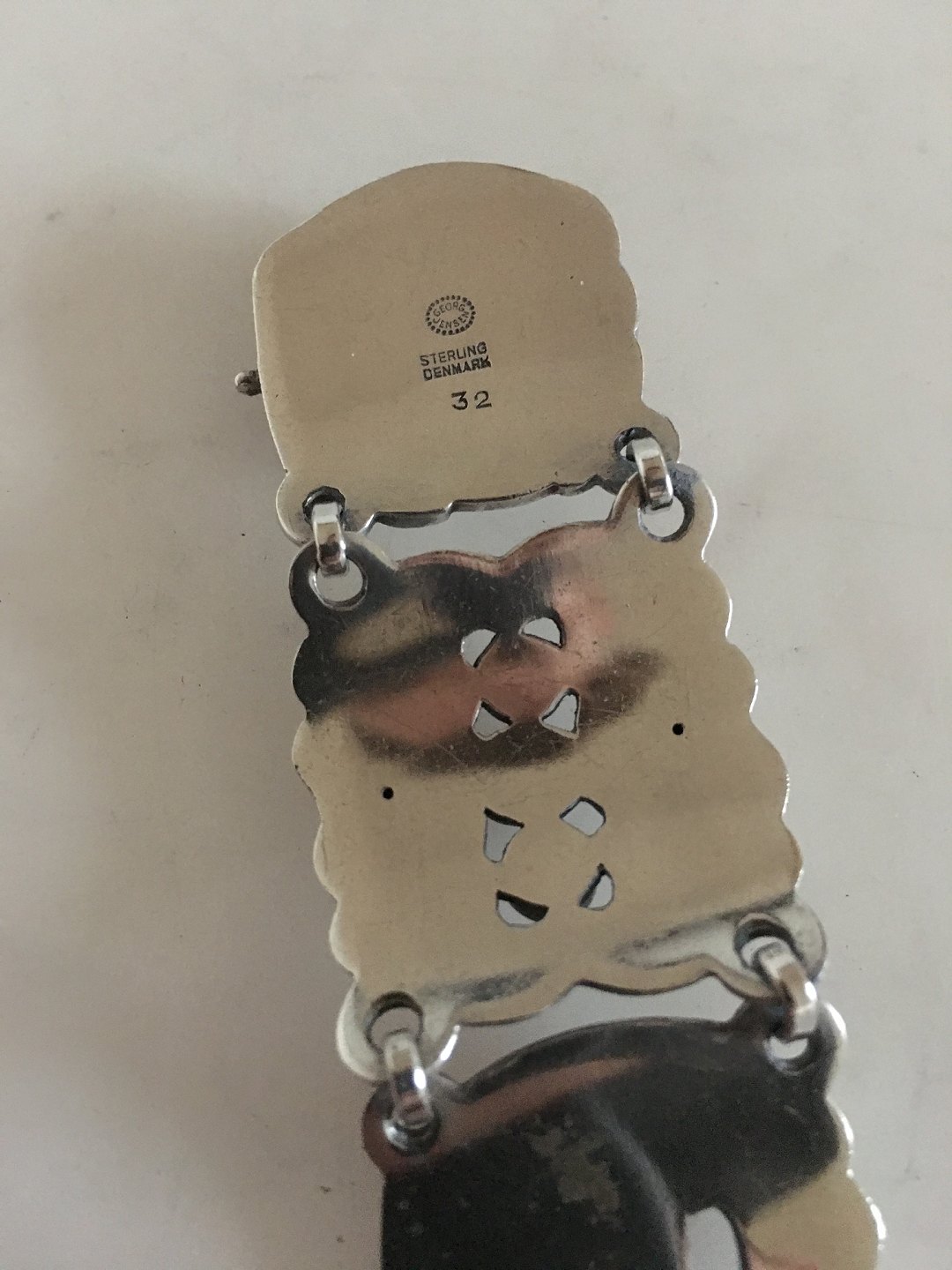 Georg Jensen Sterling Sølv Armbånd No 32 med Syntetisk Safir. Måler 19 cm. Vejer 53,7 gram. Fra efter 1945.