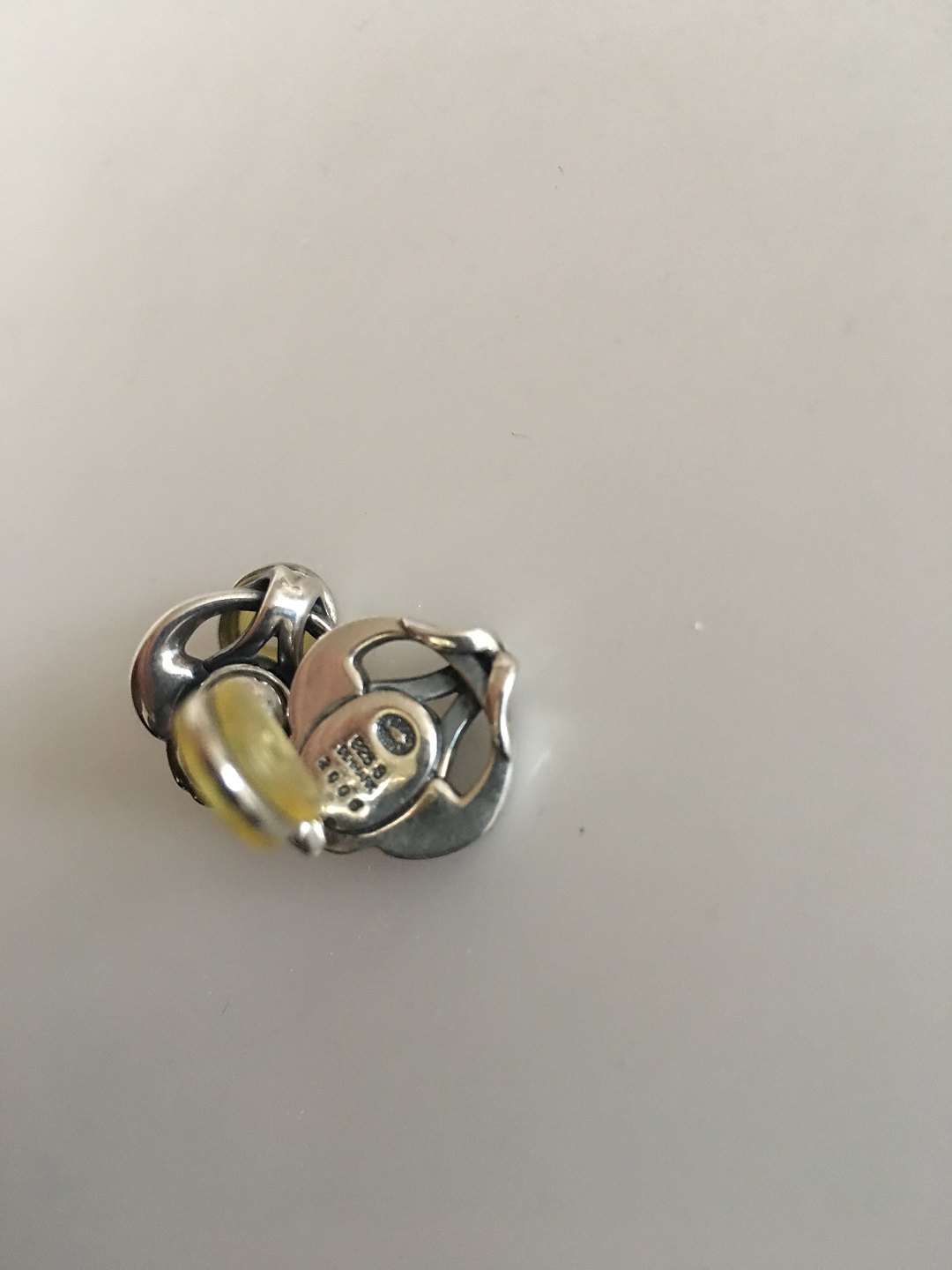 Georg Jensen Sterling Silver 2006 Annual Earrings with Silver Stones. Clips. Measures 1.5 cm dia (0 19/32"). Combined weight of 9 grams (0.30 oz).
