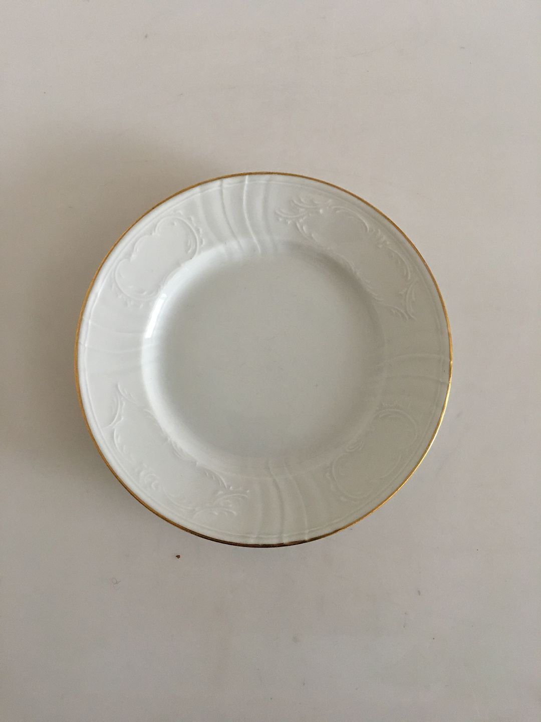 Royal Copenhagen Juliane Marie White Cake Plate with Gold No 12014.18 cm dia (7 3/32"). In nice whole condition. 2nd Quality.
