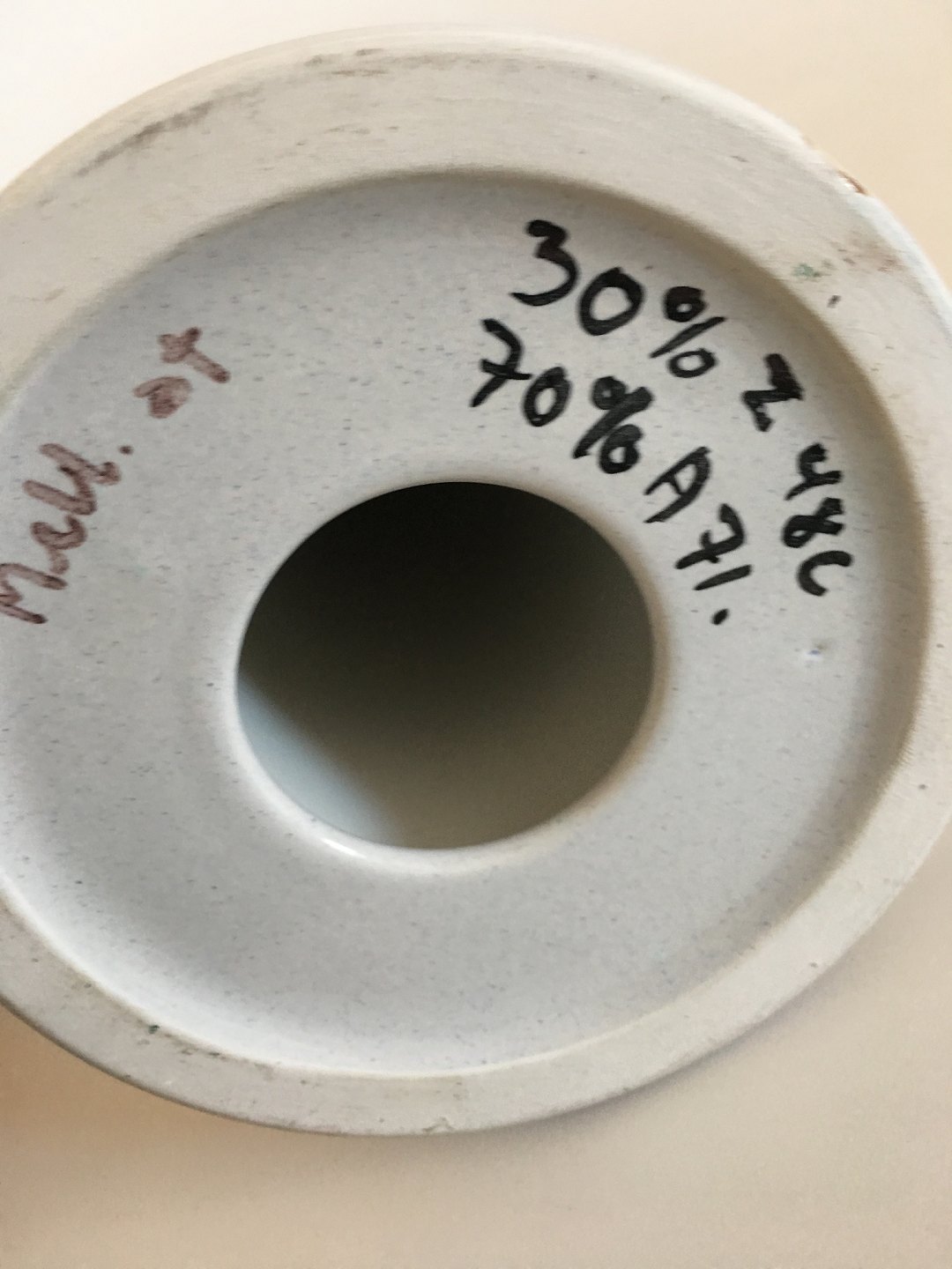 Bjorn Wiinblad Candlestick. In test glaze marked : 30% Z 48C, 70% A 71. In nice whole condition. 20 cm H (7 7/8"). Can hold a light with a diameter of 6 cm (2 23/64").