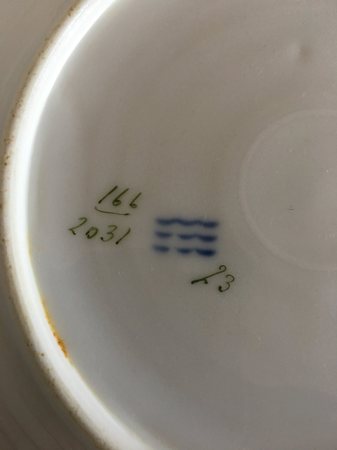 Royal Copenhagen Tallerken No 166/2031 Guldkant med Håndmalet Blomst og Sommerfugl. 21 cm Ø. I pæn hel stand, med kun en smule slid på guldet.