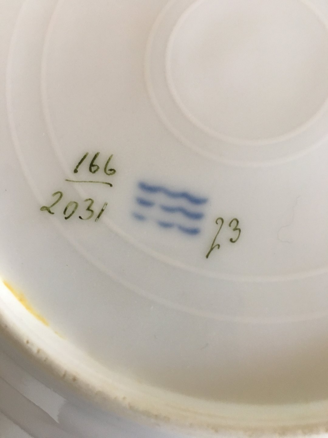 Royal Copenhagen Tallerken No 166/2031 Guldkant med Håndmalet Blomst og Sommerfugl. 21 cm Ø. I pæn hel stand, med kun en smule slid på guldet