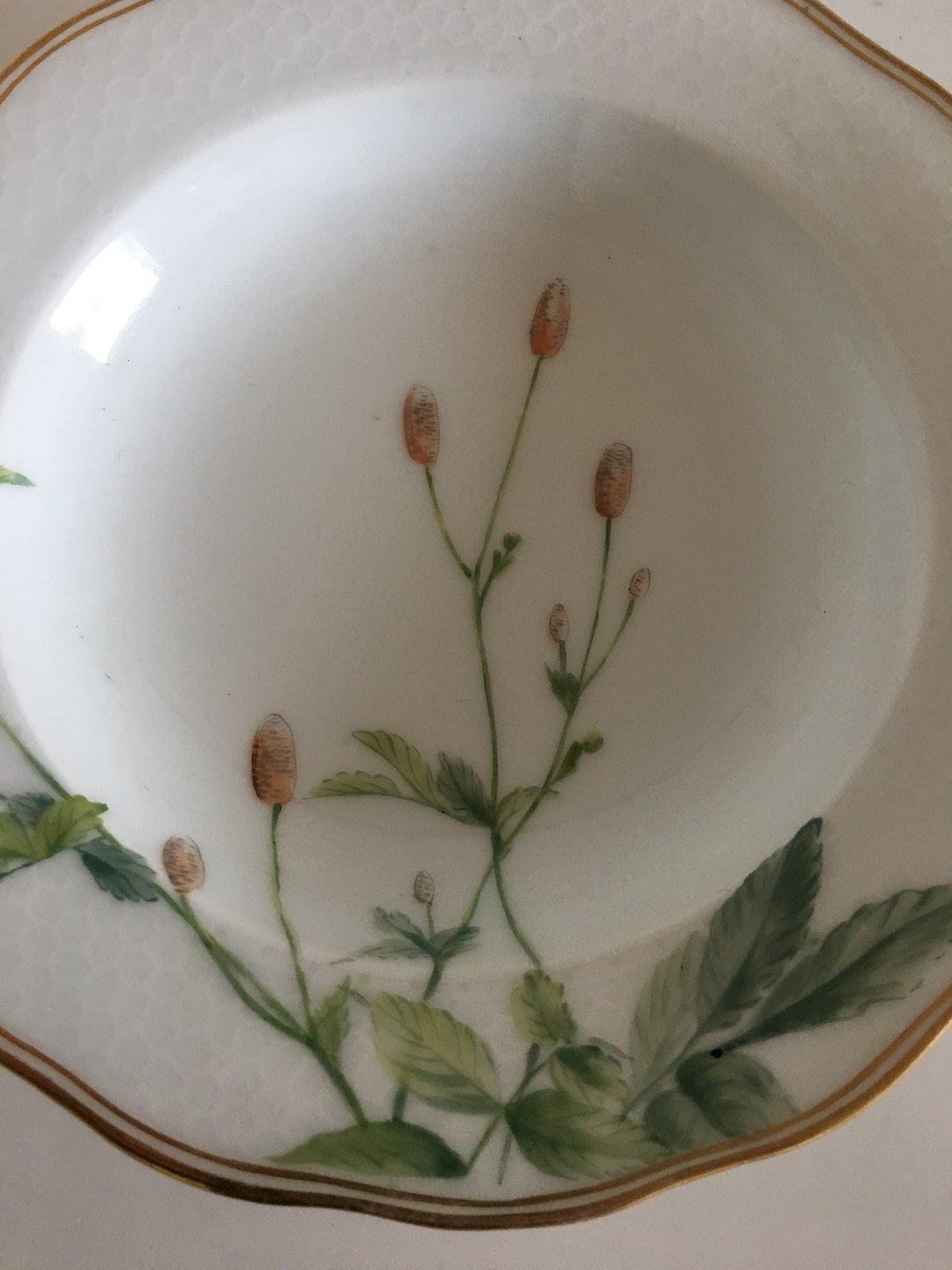 Royal Copenhagen No 116 Deep Plate with Handpainted Flowers and Gold. 21 cm (8 17/64"). Antique, In nice whole condition.