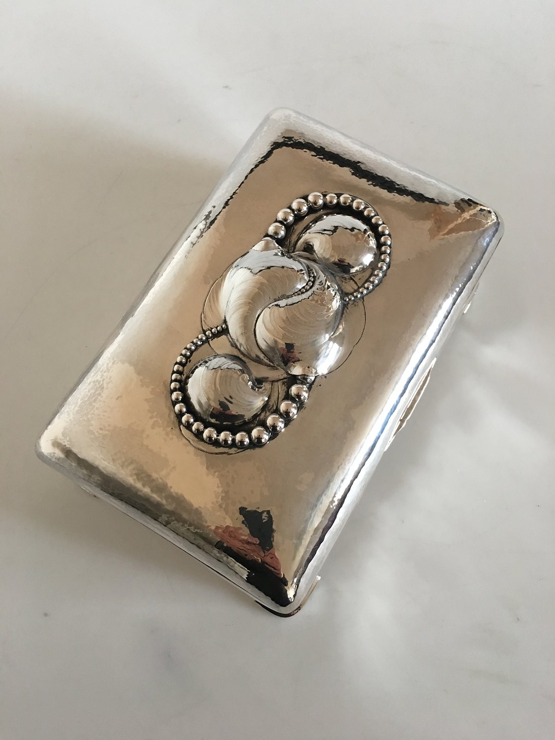 Large Evald Nielsen Silver Box. Silver Ornament with Shell Forms and whole Silver Pearls. Measures 15 x 24.5 cm (5 29/32" x 9 41/64"). 9 cm H 3 35/64"). Weighs 1155 grams / 40.88 oz. In beautiful condtition.
