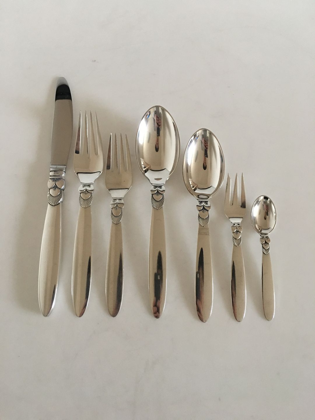 Georg Jensen Sterling Silver Cactus Flatware Set for 6 People. 42 Pieces. The set consists of: