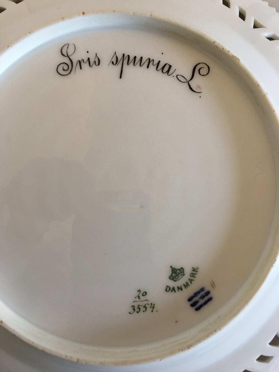Royal Copenhagen Flora Danica Frokosttallerken No 3554 med Gennembrudt Kant. 22.5 cm Ø. Latinsk Navn: Iris Spuria. I fin hel stand.