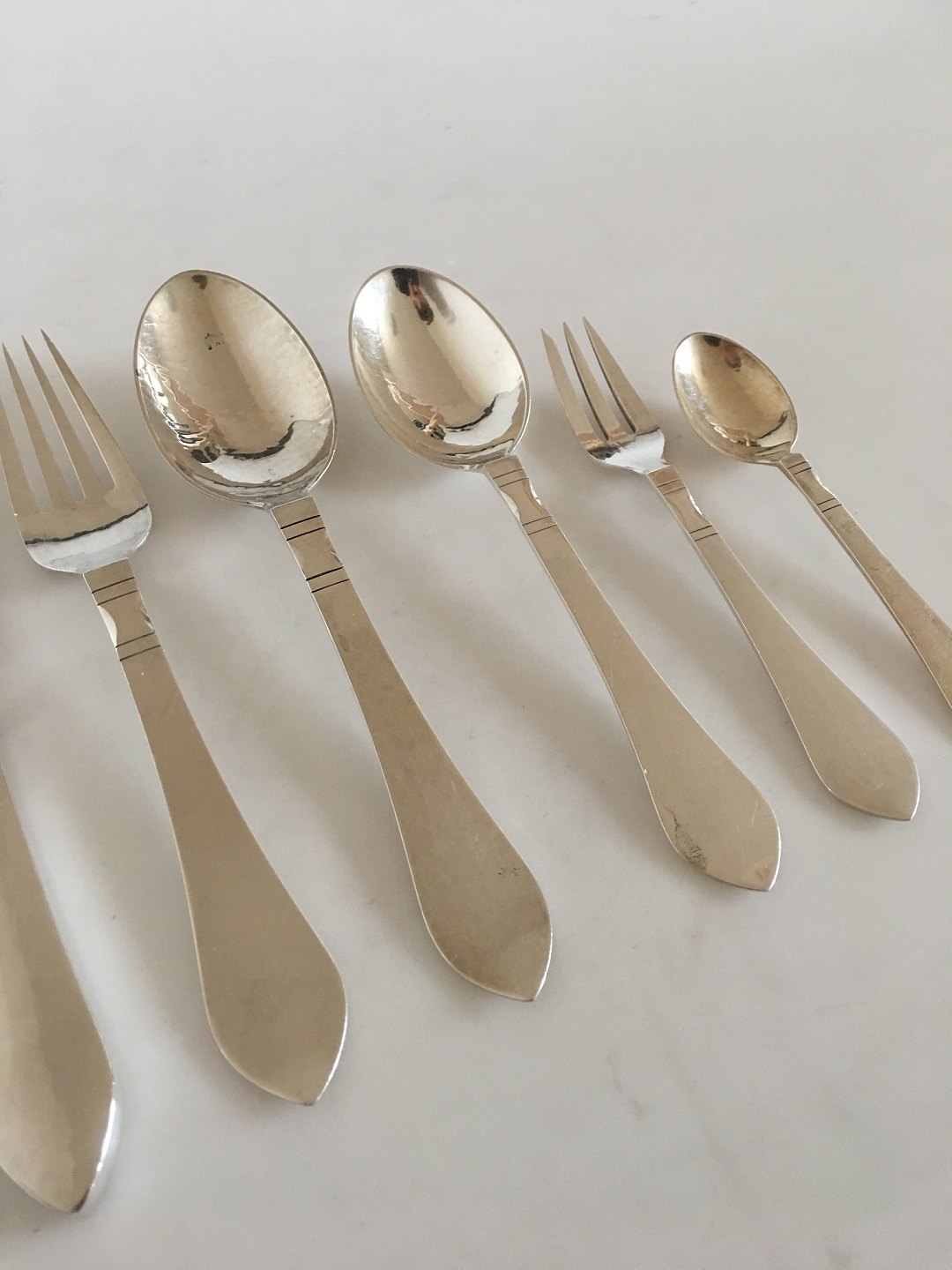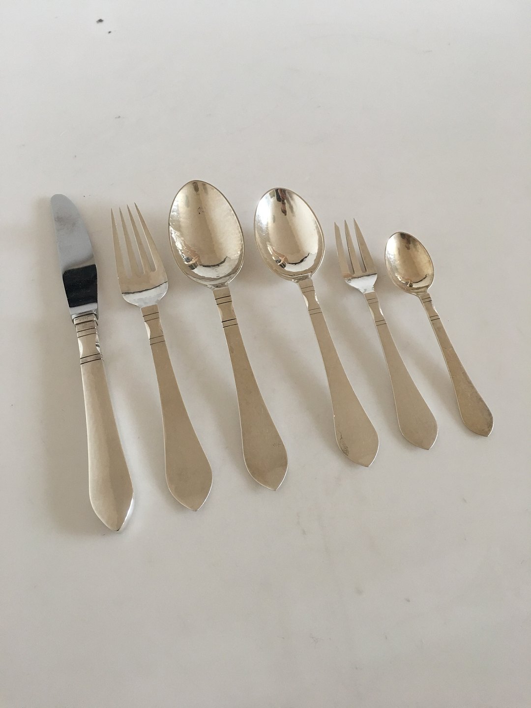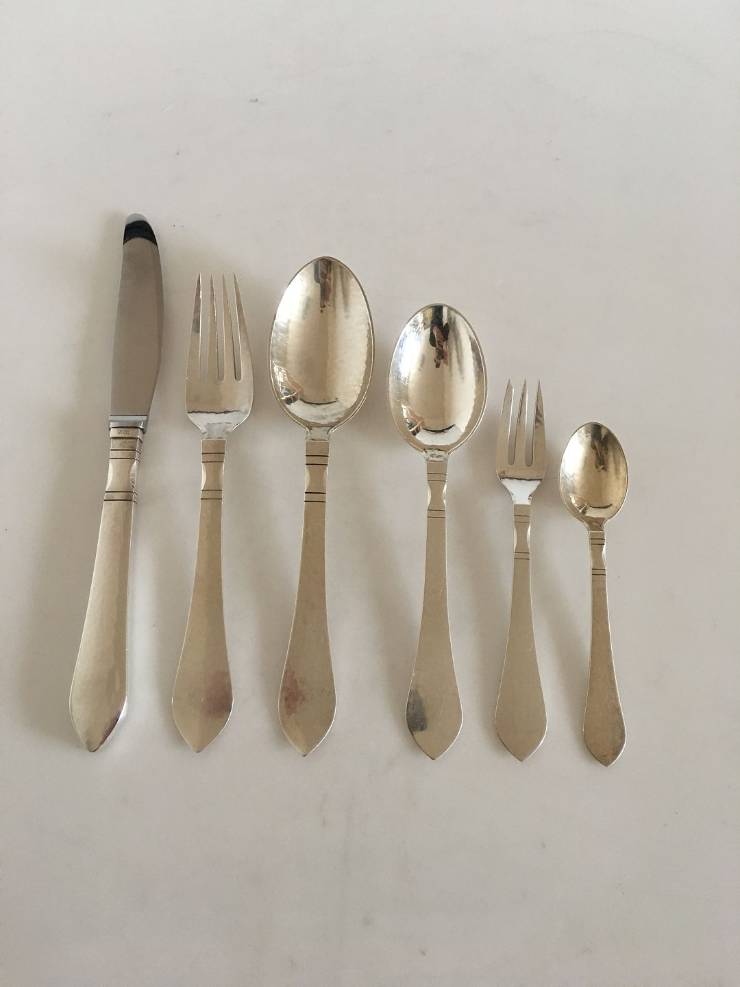Georg Jensen Sterling Sølv Antik Bestik Sæt til 12 Pers. 65 Dele. Sættet består af følgende dele: