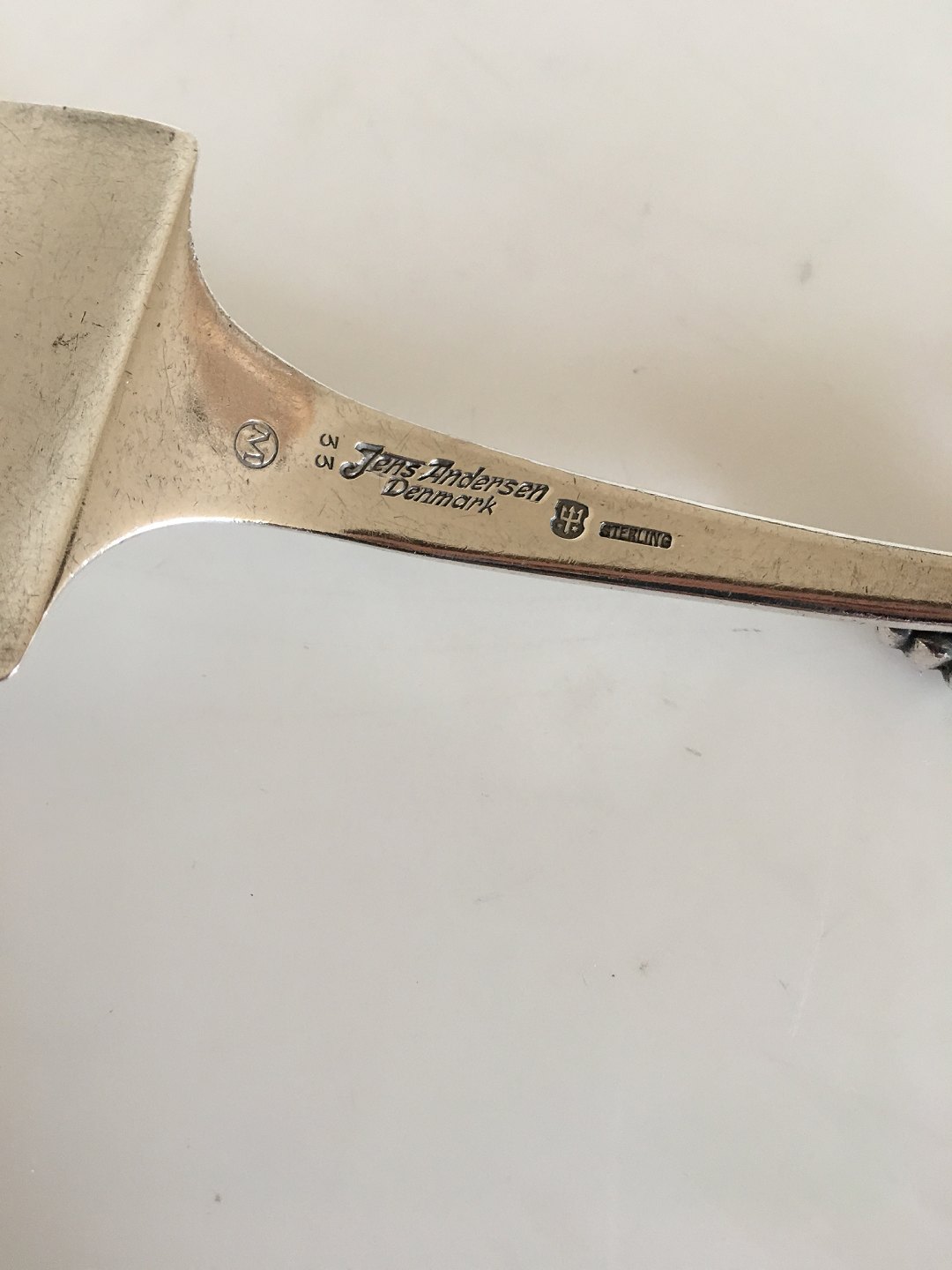 Jens Andersen Denmark Sterling Sølv Kagespade med Drue Ornamenteret Greb. 19.6 cm L.