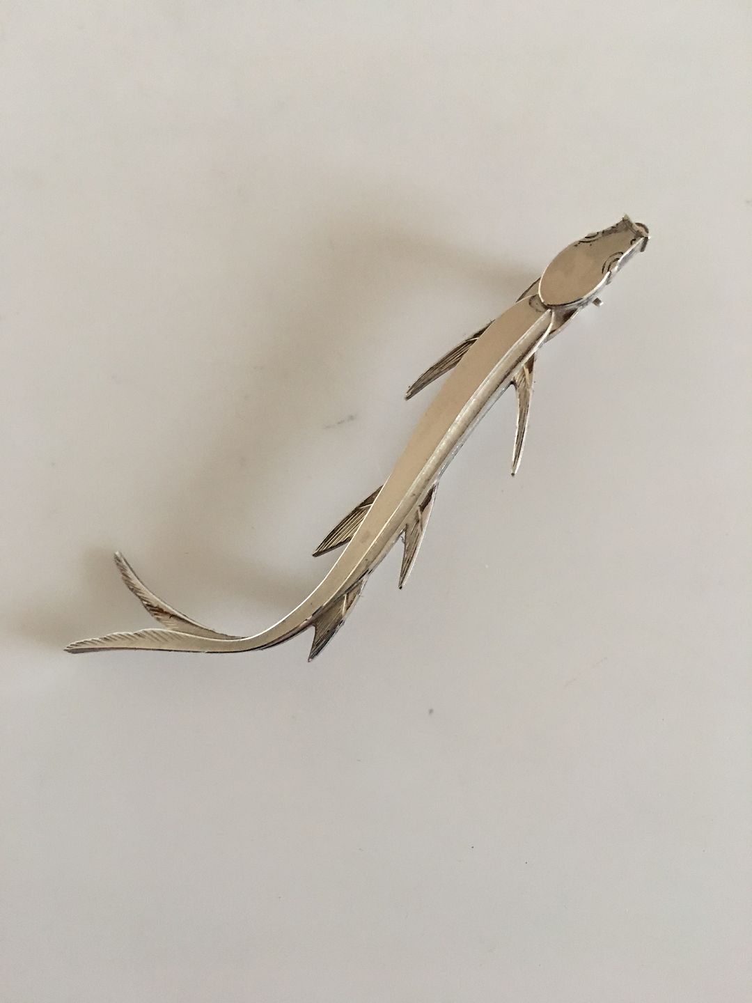 Wiwen Nilsson Sterling Silver Fish Brooch (Eel). 8.5 cm L (3 11/32"). Weighs 12 grams. In nice condition. At the moment we have another identic Wiwen Nilsson Eel Brooch. The silver marks on this however varies from the other one.