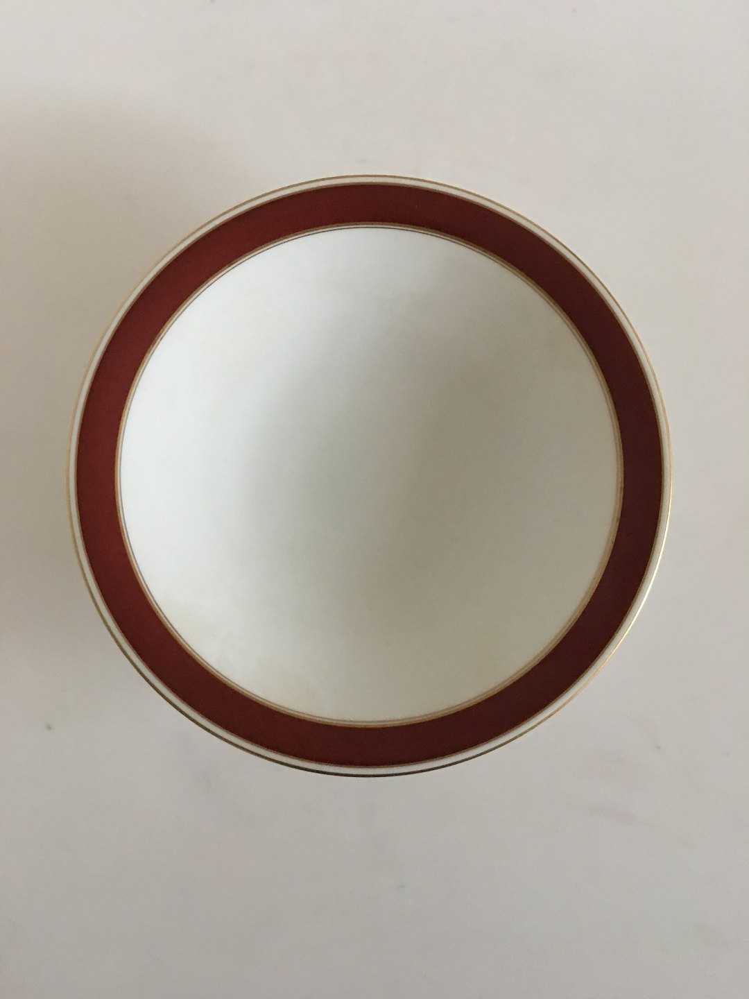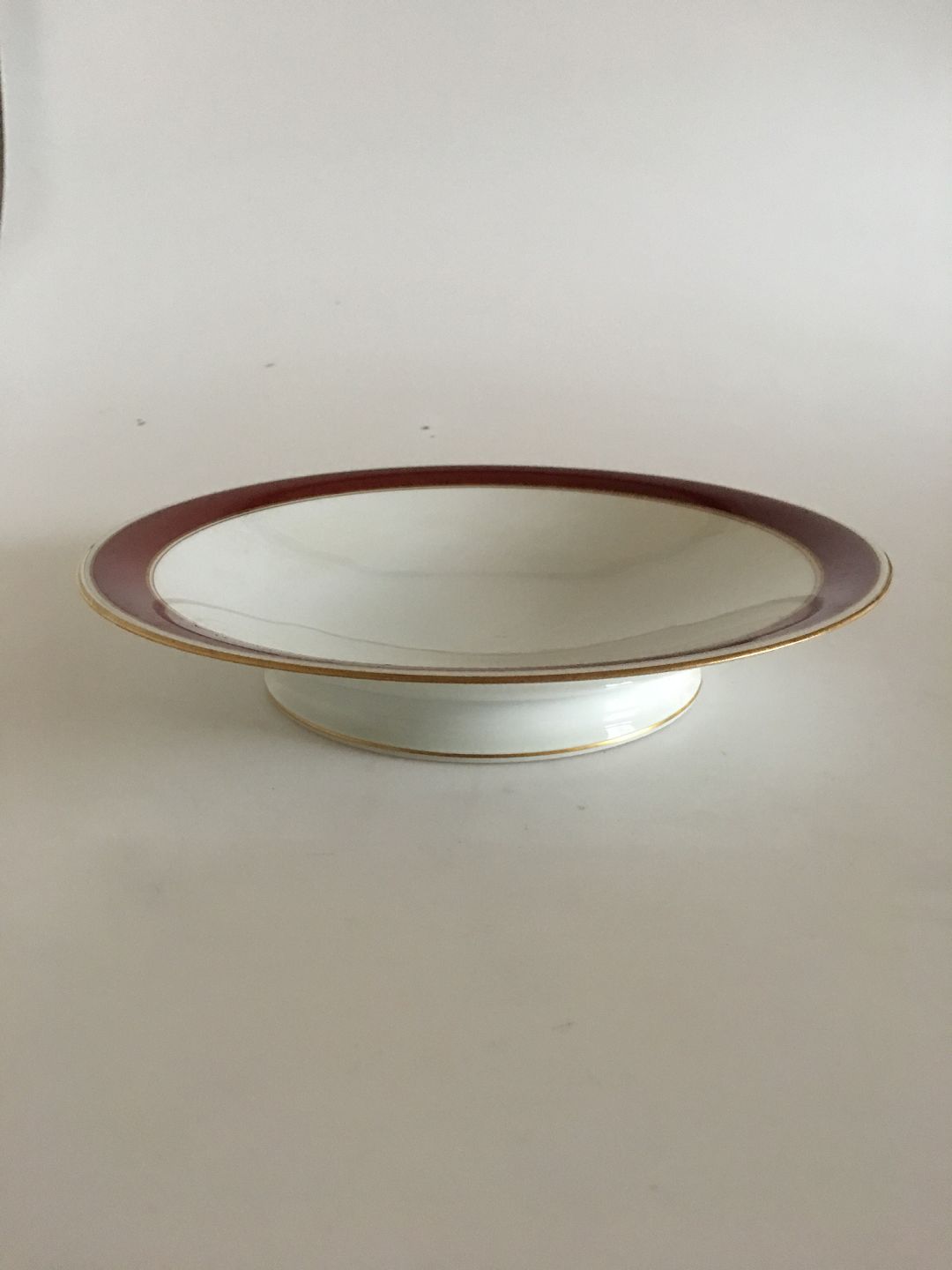 Bing & Grøndahl Egmont Cake Bowl on Short Foot No 206. Wine Red with Gold. 24 cm dia. 4.2 cm H. In nice whole condition.