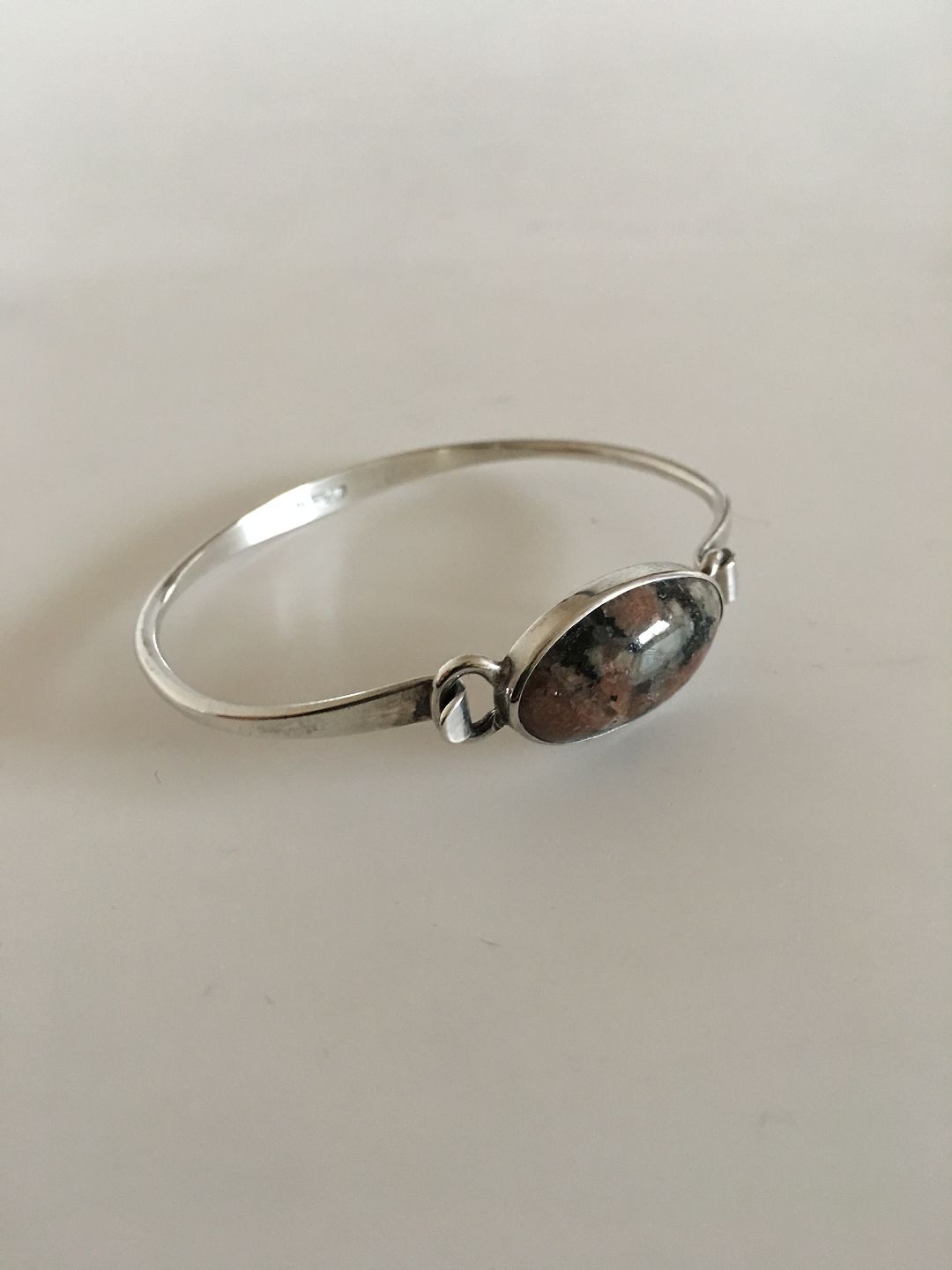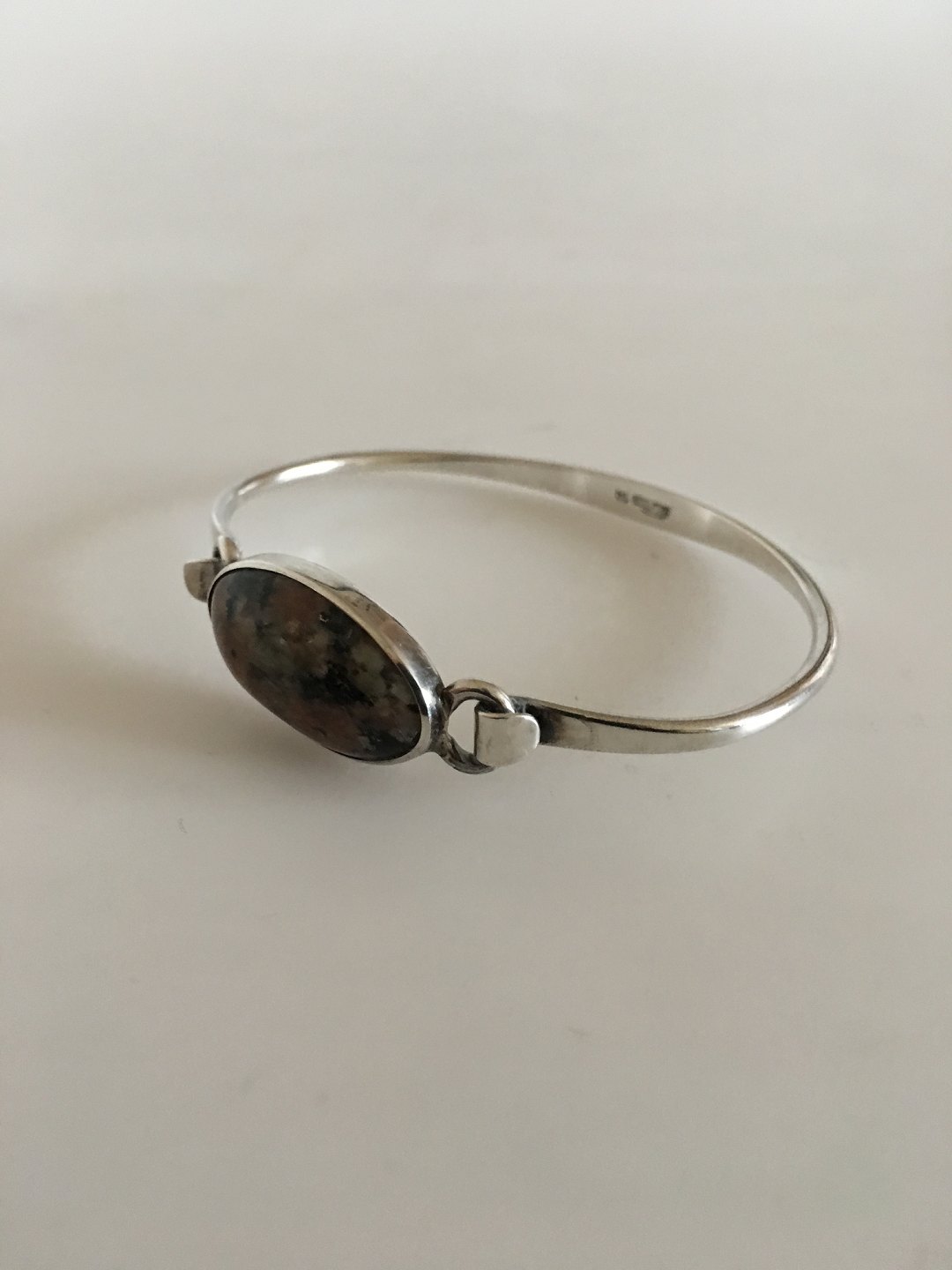 Niels Erik From Sterling Silver Bracelet with Stone Ornament. Measures 6.1 cm dia (2 13/32"). Stone is abount 2.6 cm L (1 1/32"). Weighs 15 grams (0.55 oz).