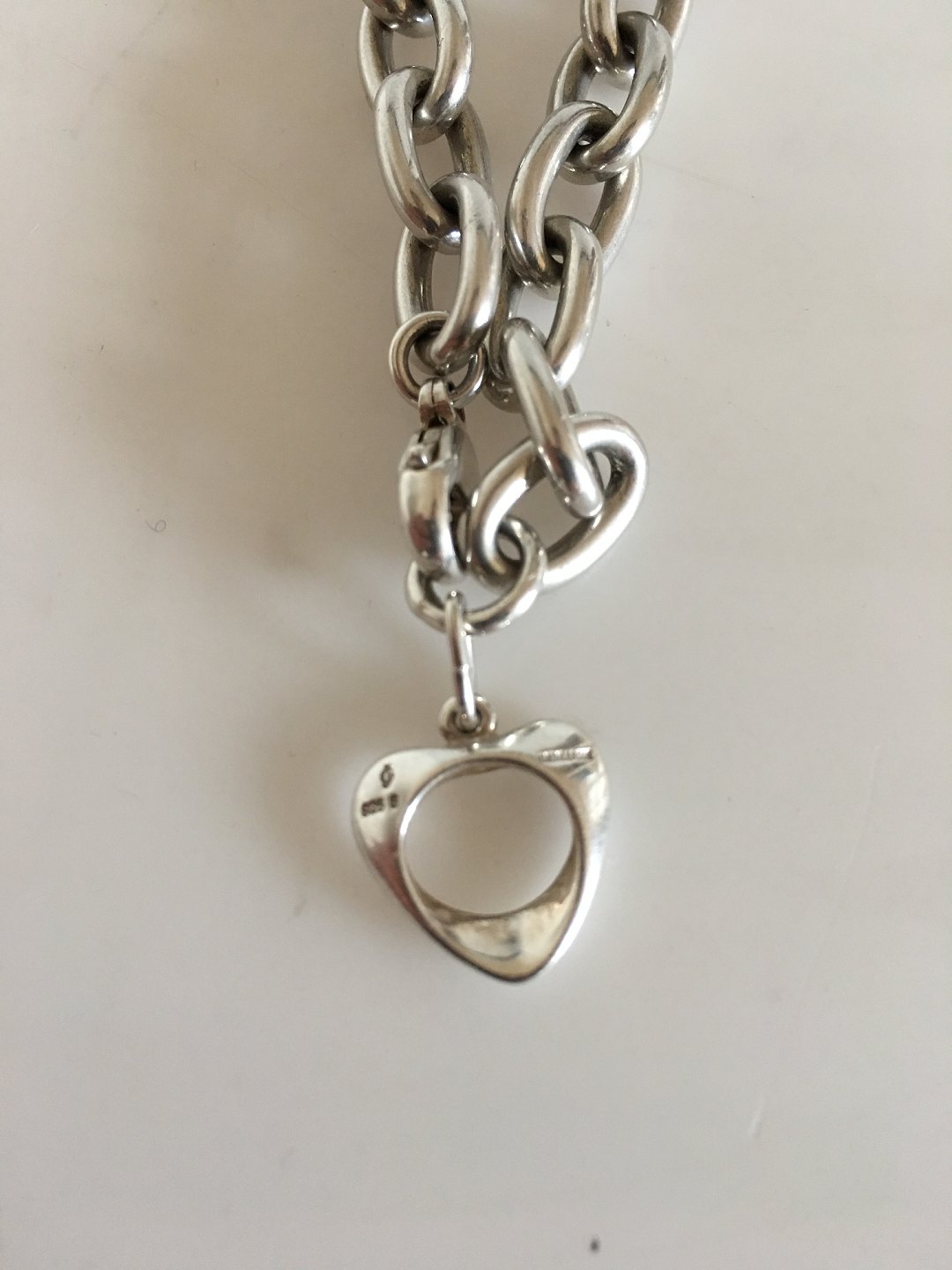 Georg Jensen Sterling Sølv Armbånd med Hjertevedhæng. 20.5 cm L. 0.6 cm B. Vejer 35 gram.