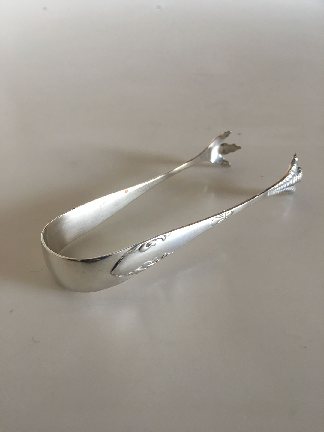 Delt Lilje Sølv Sukkertang. 11.5 cm L