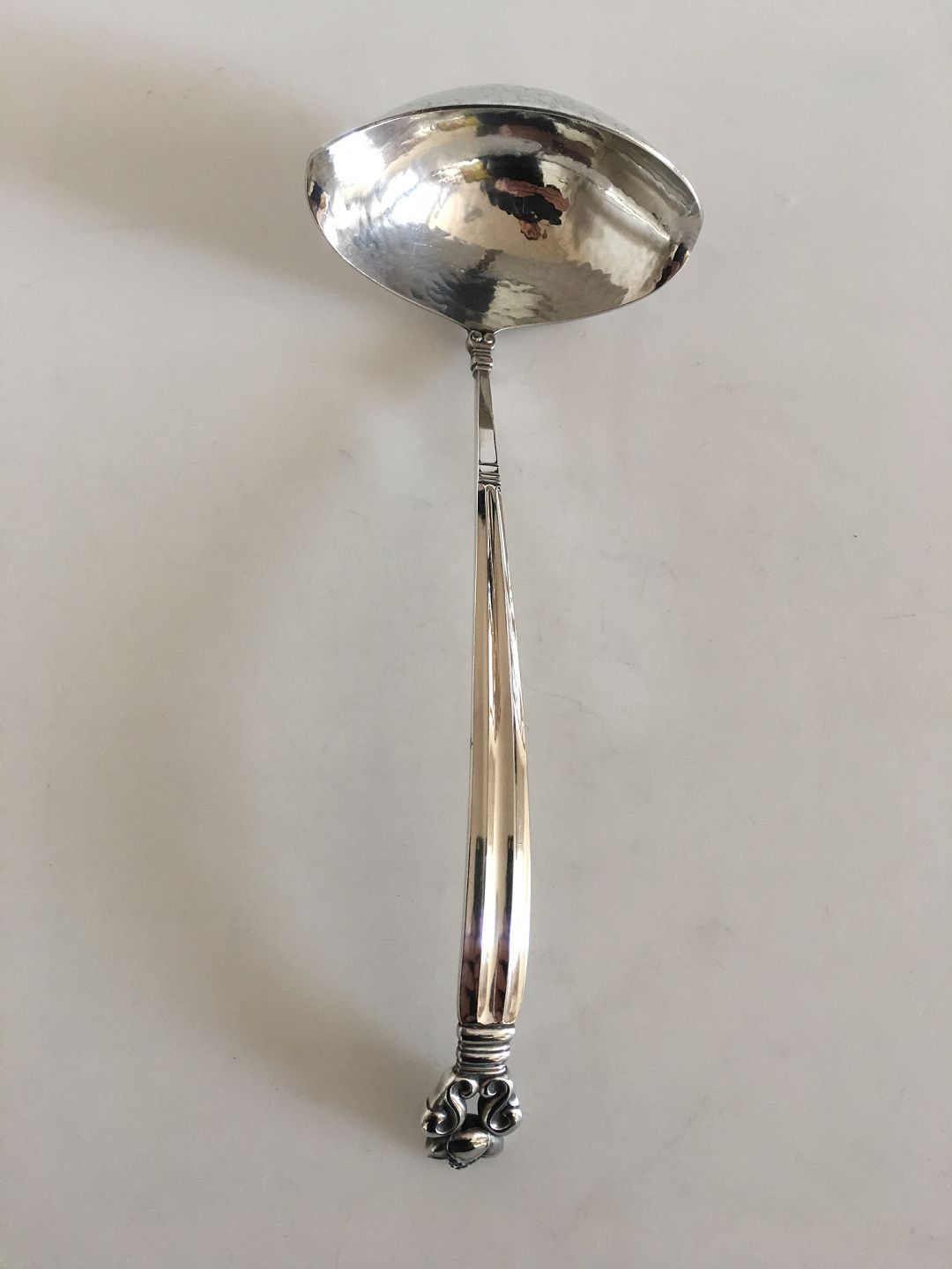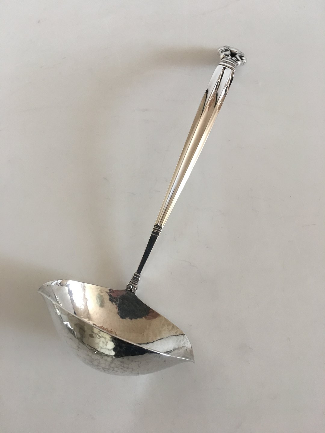 Georg Jensen Sterling Sølv Konge Sovseske med Kurvet Håndtag No 129. Måler ca. 19 cm. I flot stand.