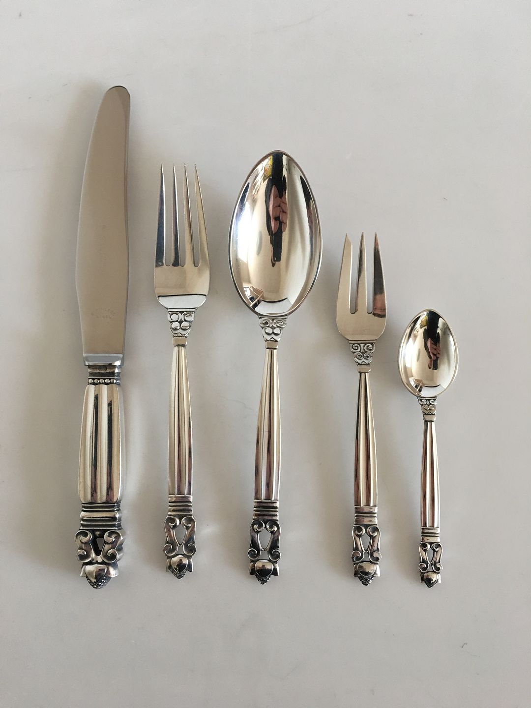 Georg Jensen Sterling Sølv Konge Frokost Bestik Sæt. 40 Dele. 8 Pers. Sættet består af følgende dele;