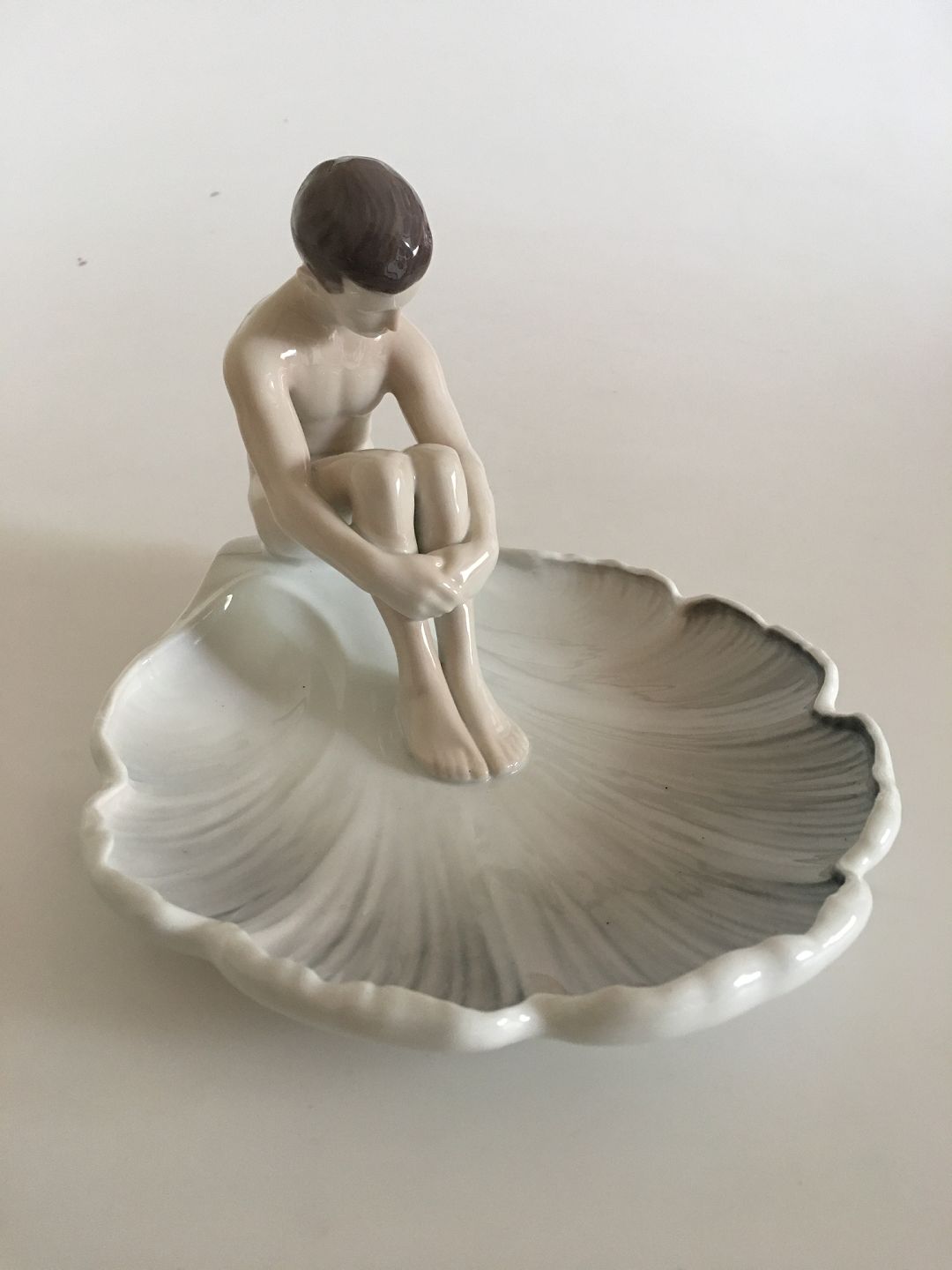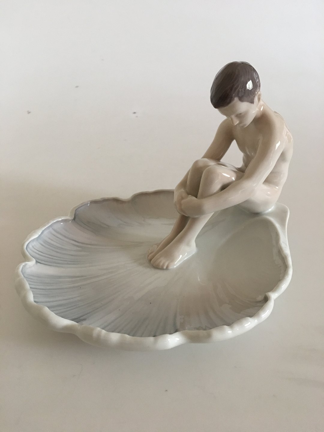 Bing & Grøndahl Bladformet Art Nouveau Skål med Ung Mand No. 1660. Måler 15 cm H. 21.5 cm Ø. 1. Sortering. I fin hel stand.