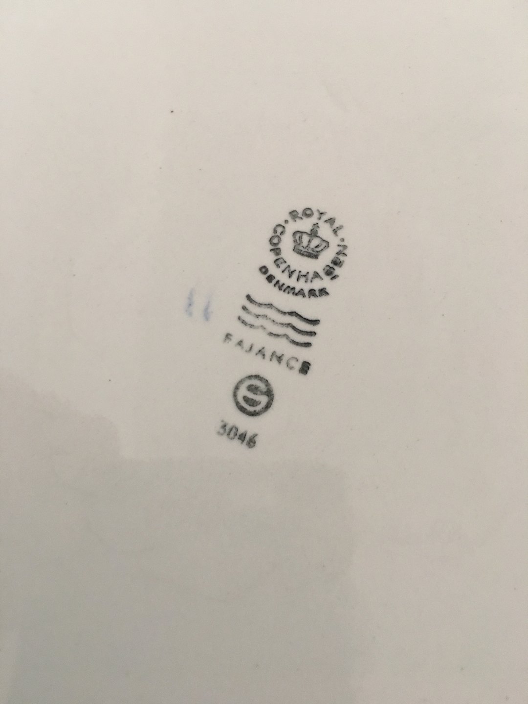 Royal Copenhagen Grethe Meyer Blåkant Lidded Bowl No 3046. 10 cm H. 23.5 cm dia