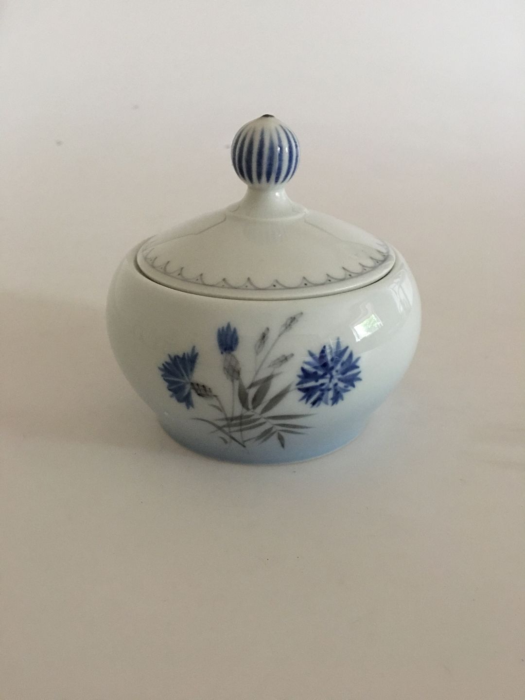 Bing & Grøndahl Demeter / Blå Kornblomst Sukkerskål No 94. 6.5 cm H (målt uden låg). 11.5 cm dia.