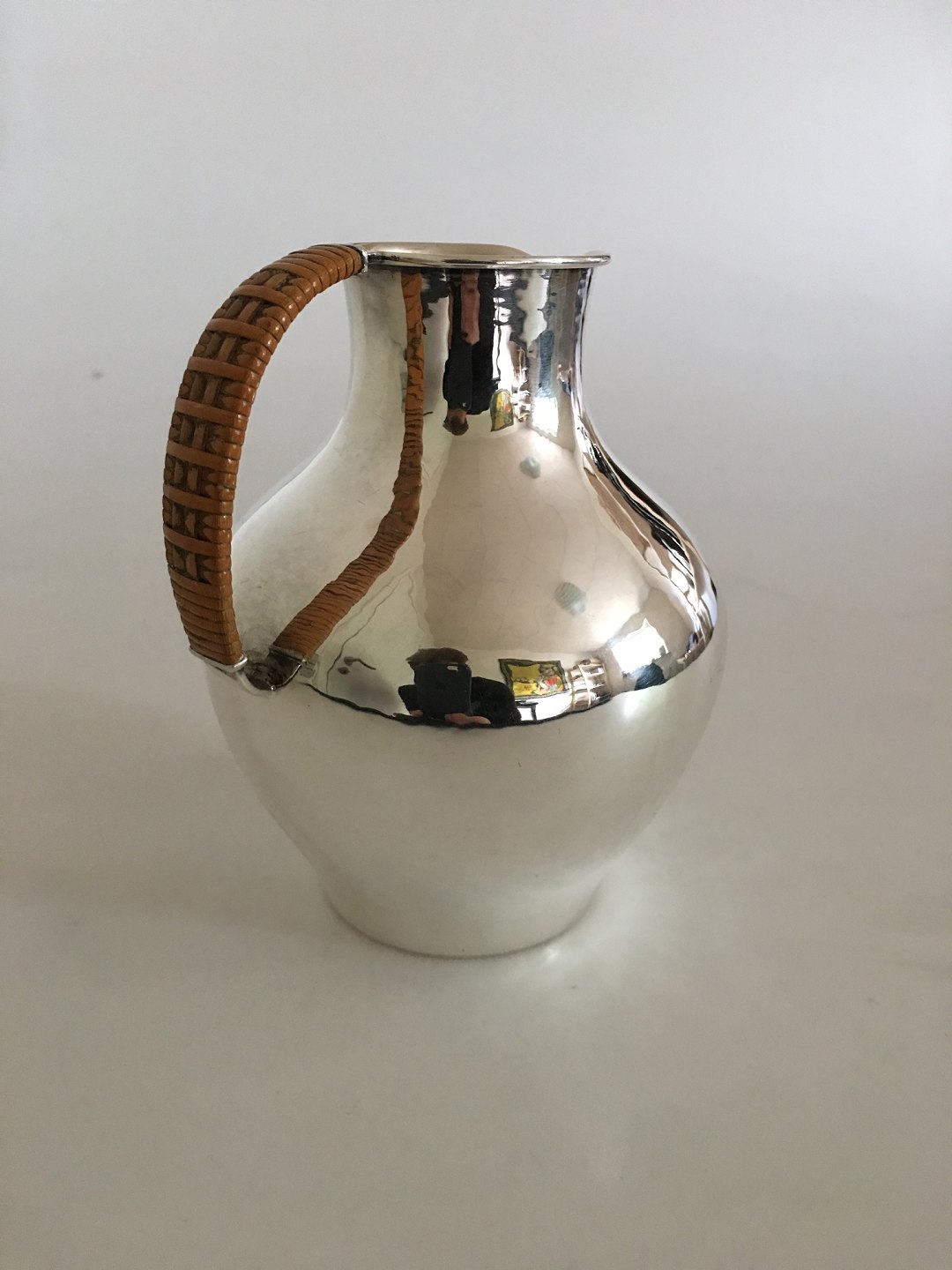 Hans Hansen Sterling Sølv Kande no. 308 med Bast ombundet Hank. Anno 1957. Denne lille kande er 13 cm høj, vejer 286 gram og er i smuk stand.