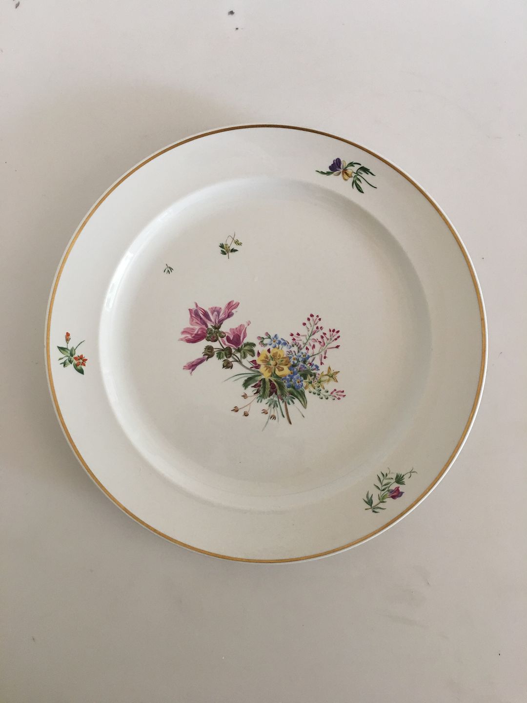 Royal Copenhagen Primavera Thorkild Olsen Round Serving Platter No 1515/14038. White Service with flower decoration and gold band. The platter measures 34 cm dia.