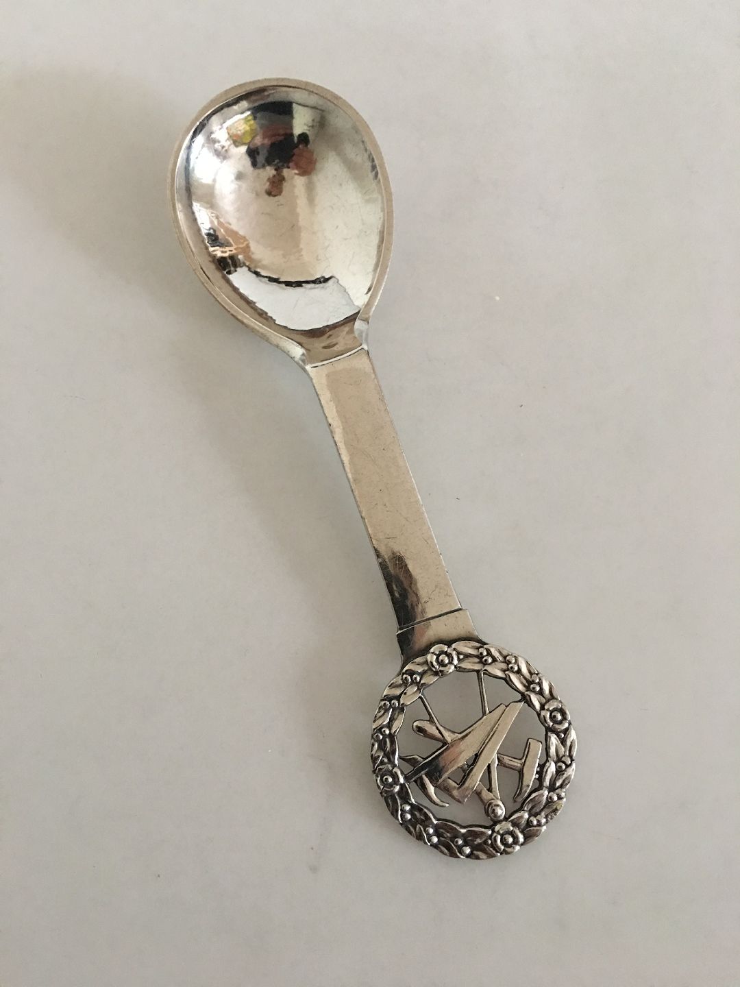 Evald Nielsen Sølvske med Håndværker Ornament. Hammer, Sav, Målestok. 14.5 cm L. I god stand.