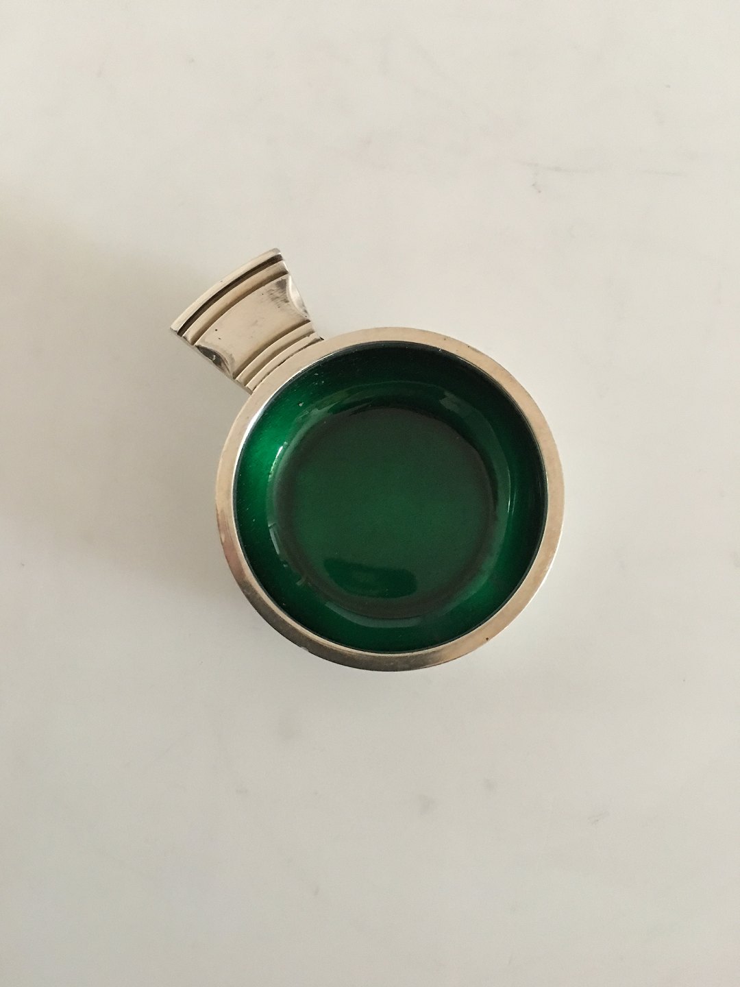 Georg Jensen Antik Sterling Sølv Saltkar No.4 med Grøn Emalje. 1.5 cm H. Ca. 4 cm Ø. I fin stand. Fra efter 1945.
