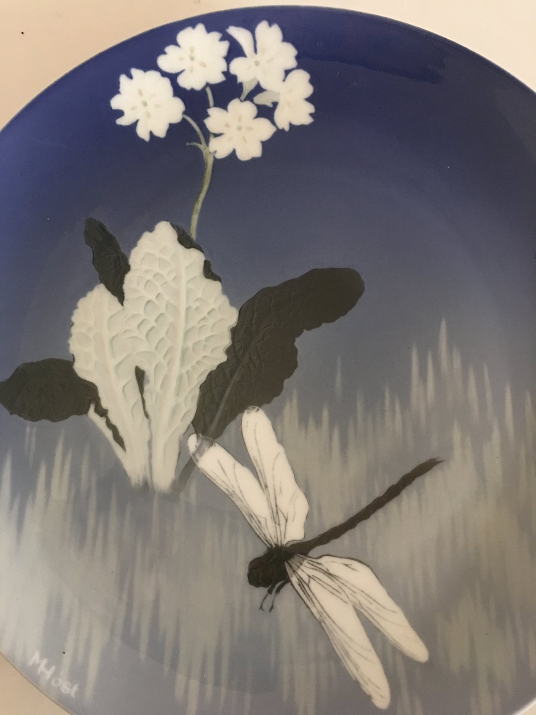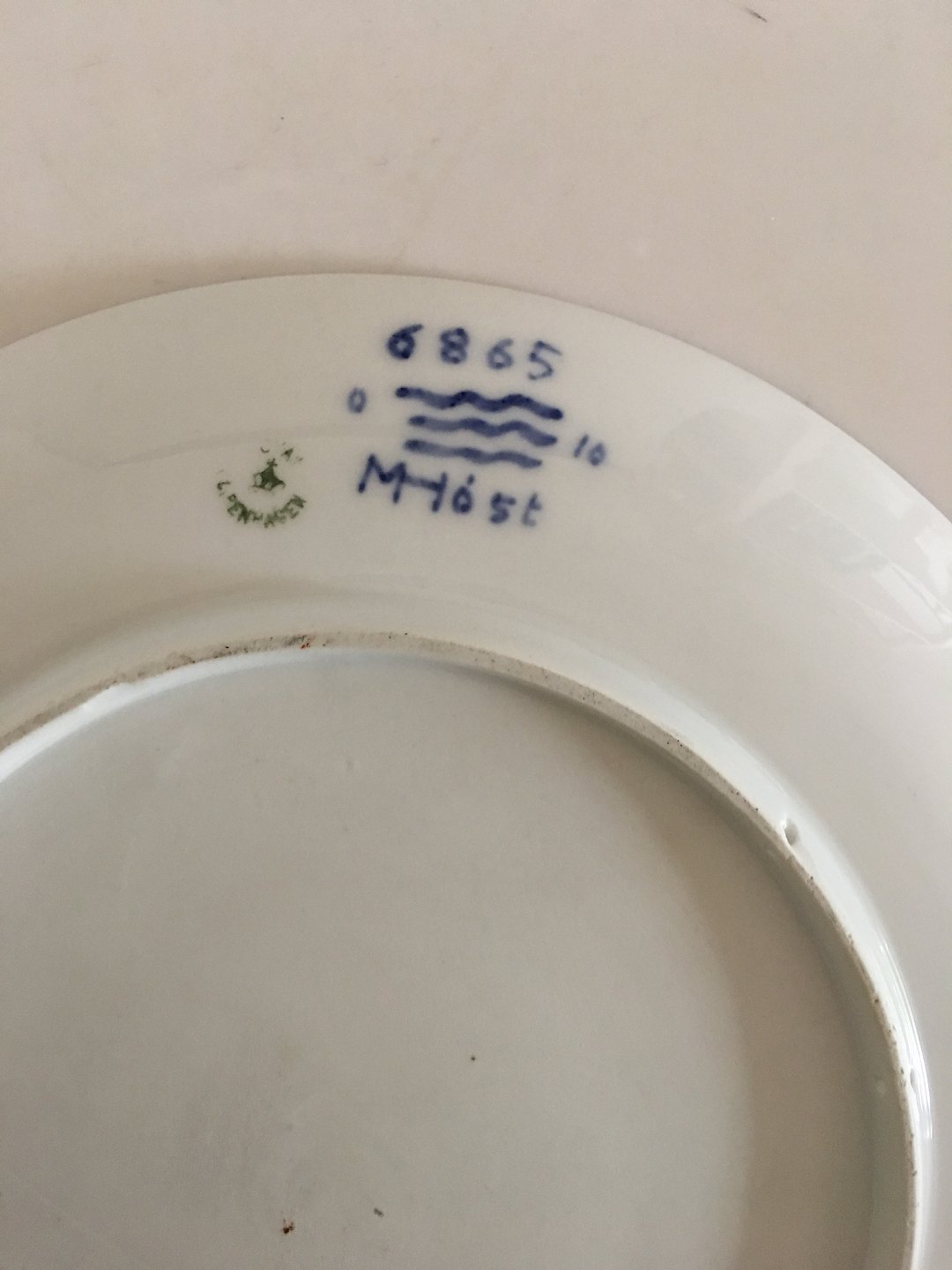 Royal Copenhagen Motiv Platte med Unika Motiv No. 6865 af Marianne Høst fra oktober 1898. Måler 30 cm i diameter. I fin hel stand. Blomster motiv og en guldsmed