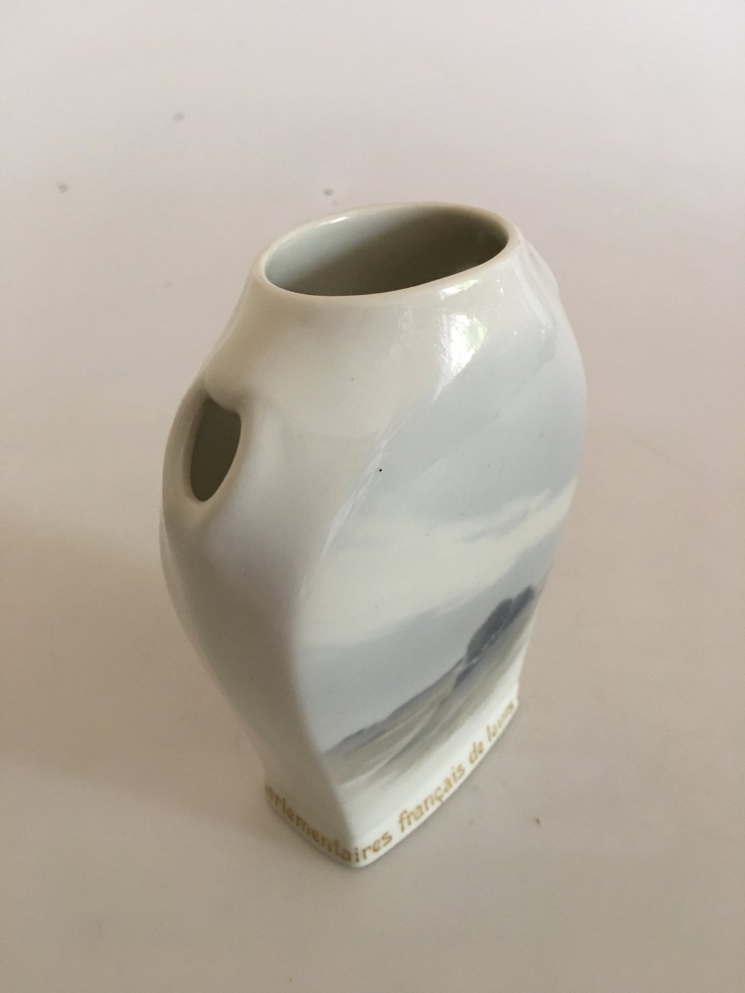 Bing & Grøndahl Art Nouveau Mindevase "Aux parlementaires francais de leurs confrères danois, Juillet 1909". B&G Stempel fra 1902-1914. 1. Sortering, fin hel stand 15 cm Høj. 11 cm Bred.