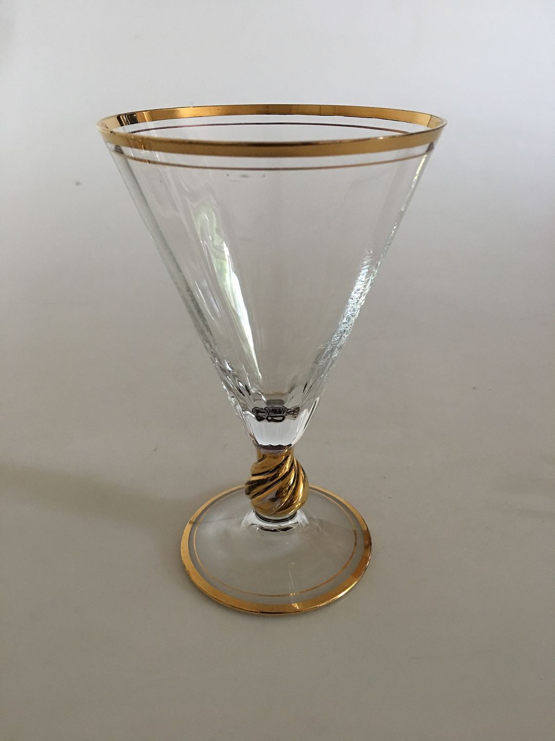 Holmegaard Ida Red Wine Glass with Gold Band on Stem, Rank and Foot. Measures 14.5 cm / 5 45/64 in. H x 9.3 cm / 3 21/32 in. dia.