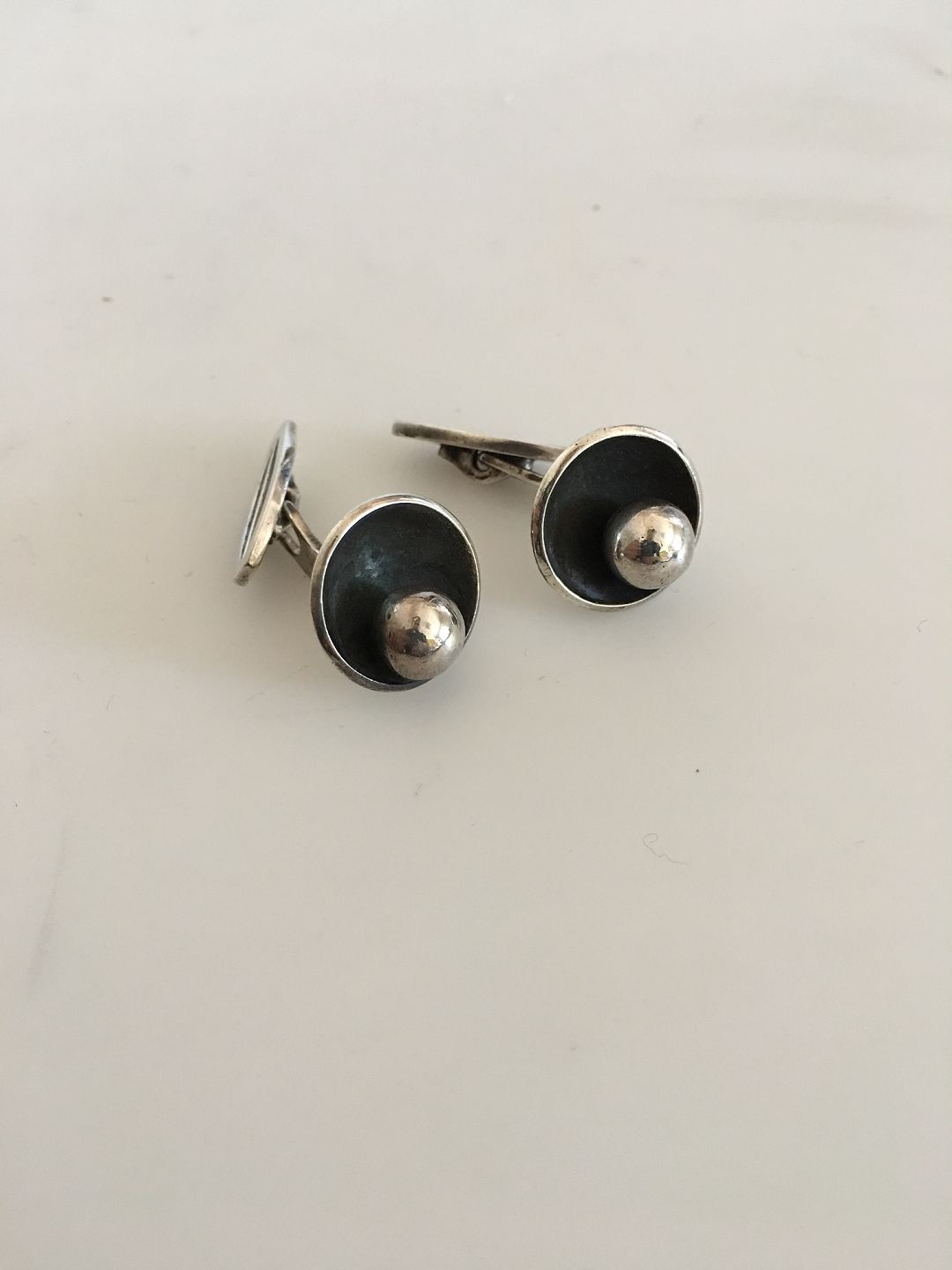 Hans Hansen Sterling Silver Cufflinks. Measures 1.5 cm diameter / 0 19/32 in. Combined weight of 14.3 g / 0.51 oz.