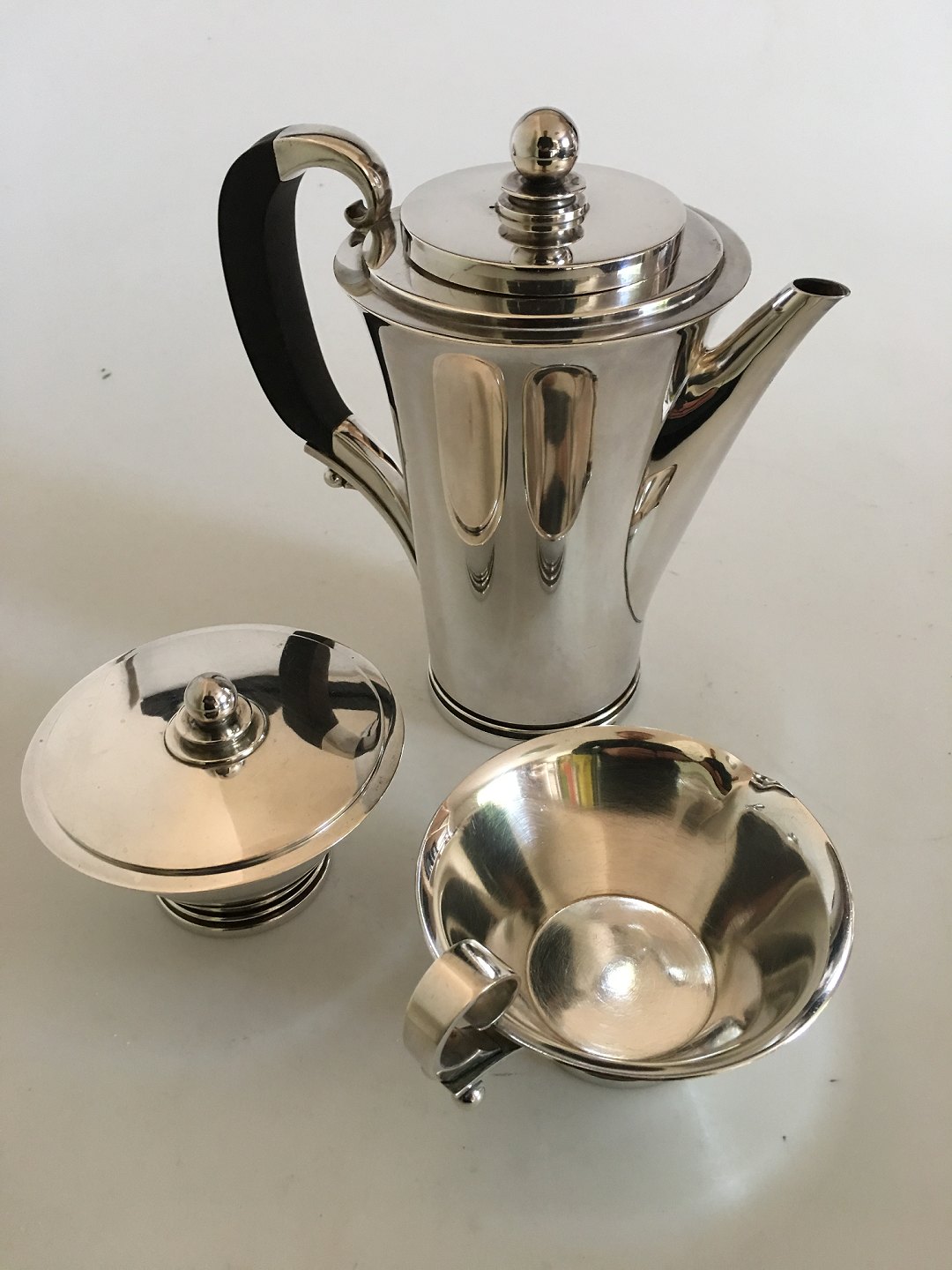 Georg Jensen "Pyramide" Sterling Sølv Kaffesæt No. 600. Designet af Harald Nielsen. Delene er med Georg Jensen Sølvstempler fra 1932-1944.