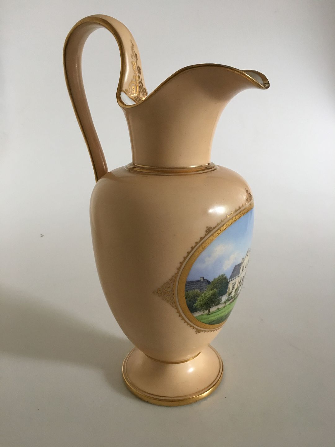 Royal Copenhagen Tidlig kande med låg og motiv af Herskabsvilla.