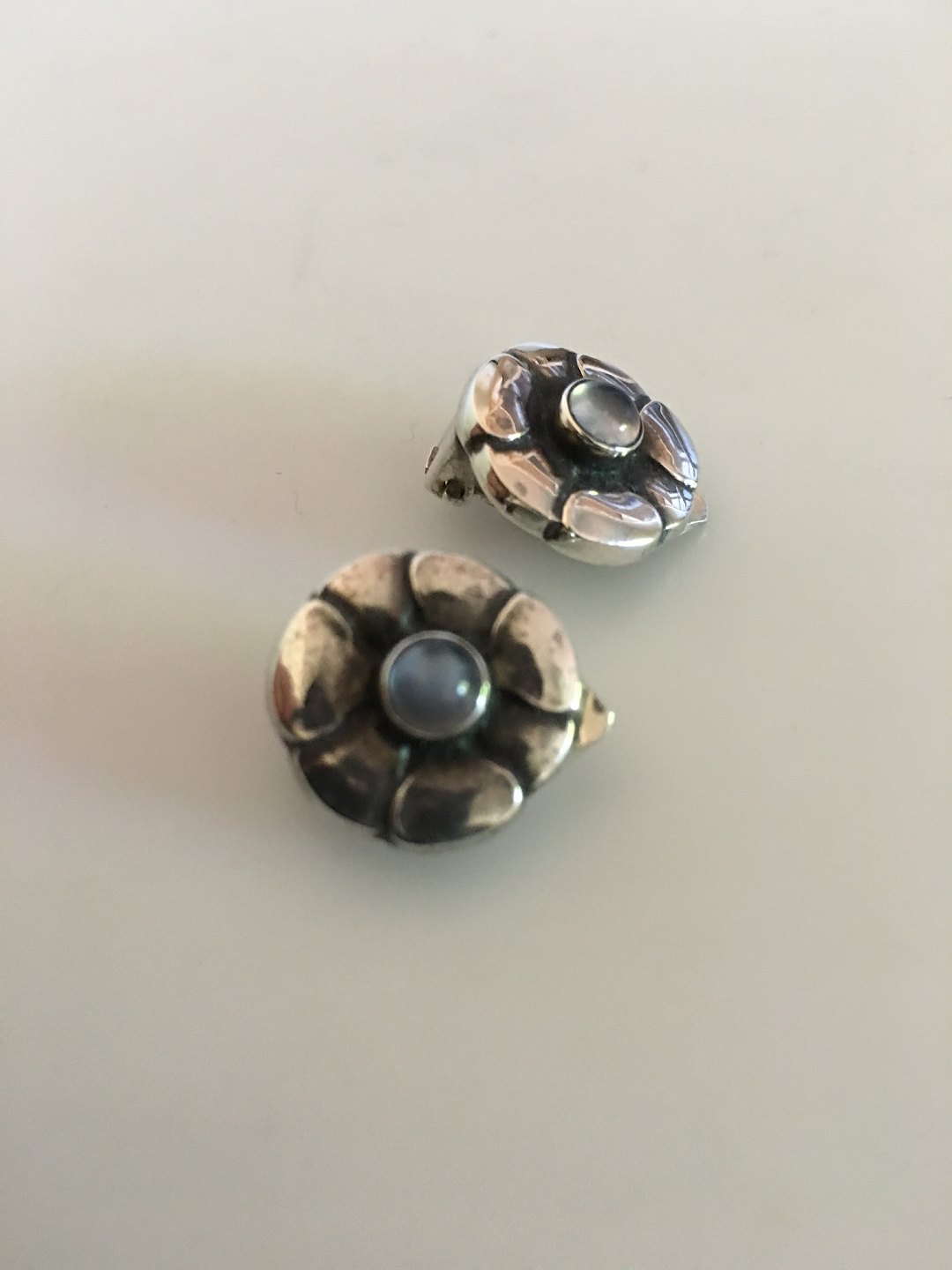 Georg Jensen Sterling Silver Earrings (Clips). No 36 with Moonstones.